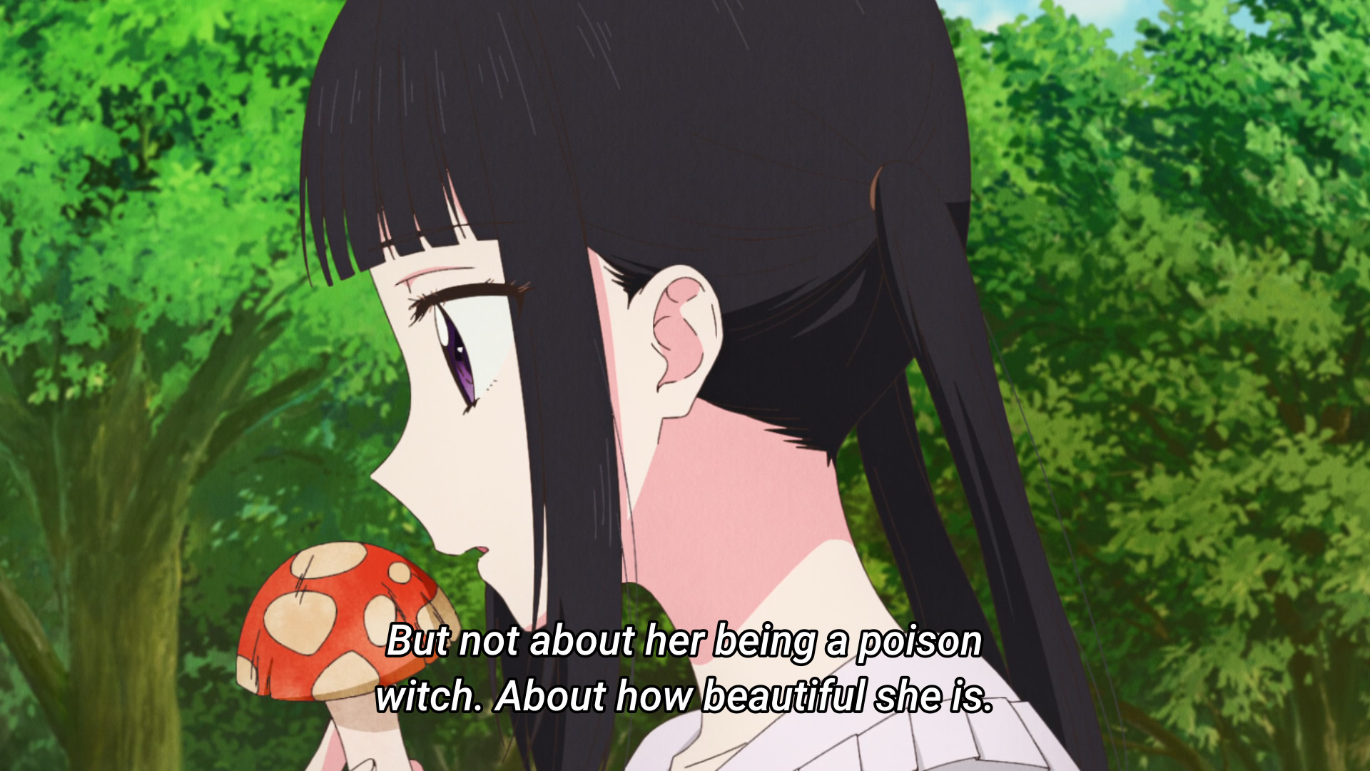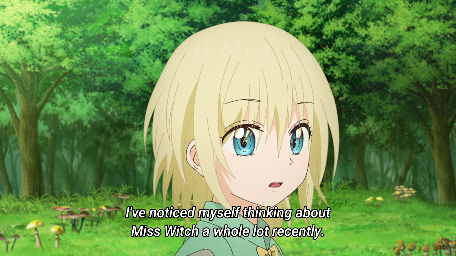 >>286195093The first two eps are really really good. Then the show drops in quality significantlyIt's about a witch who makes mushrooms everywhere she goesThe animation and art style was fun whimsical in the first two eps, but since then has been very poor all around. It's really cheap and there are sometimes noticeable errors. The direction is also really strange. There are some scenes that are played out so awkwardly that it's hard to tell what is physically happeningThe cutes are quite cute, yesThere is a shotta but he is boring
