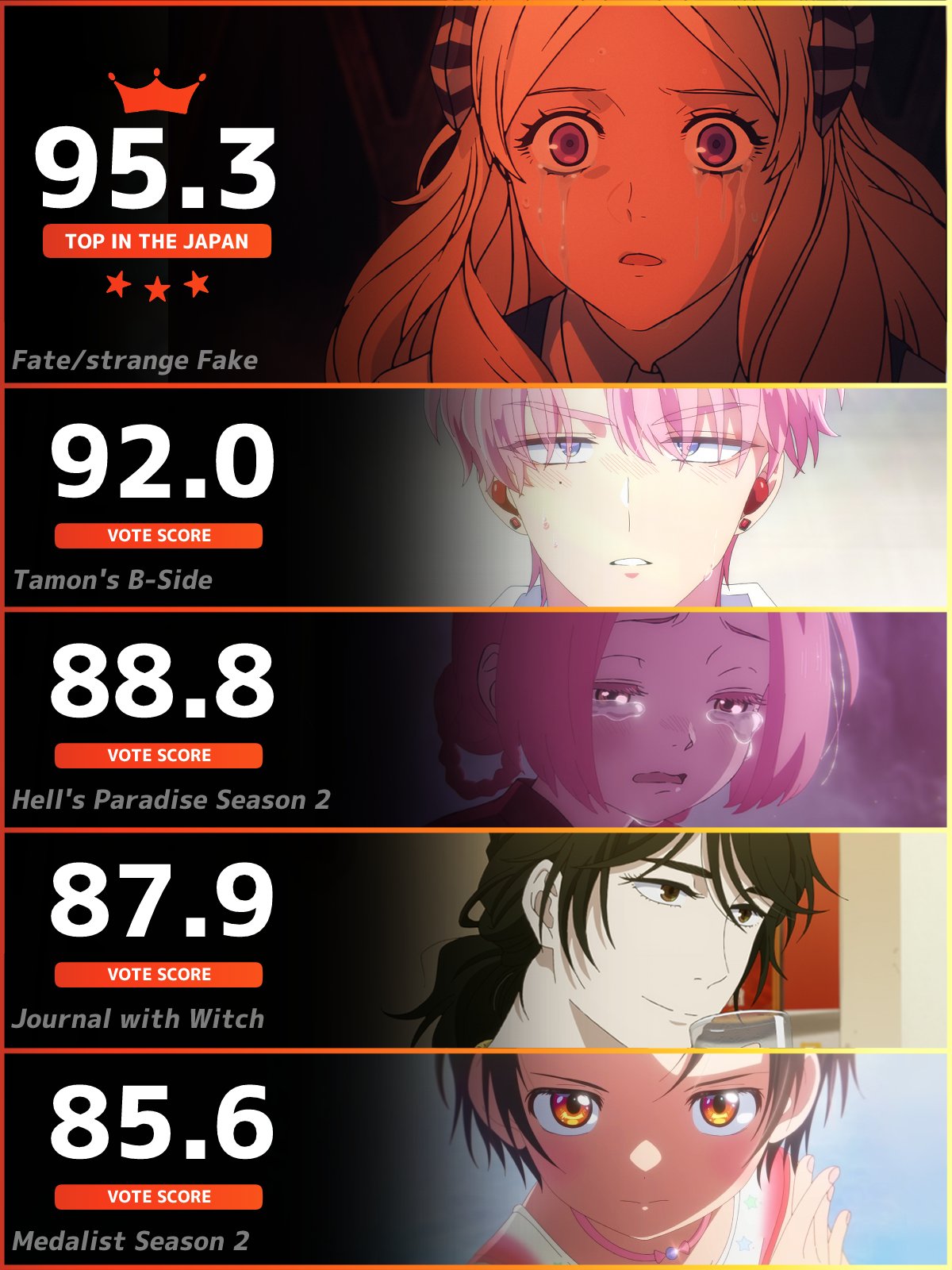 Someone post the screenshots with FSF being the No. 1 show in Japan