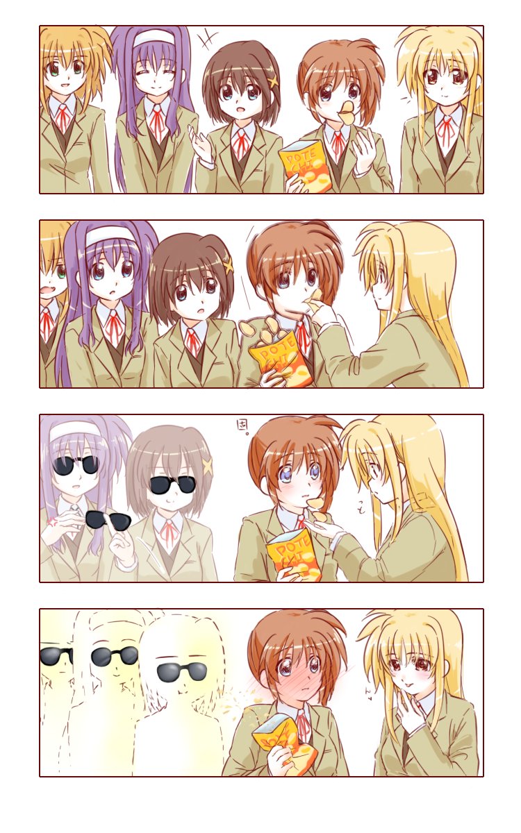 Series would be better without the yuri stuff and just be a platonic thing,hope they add some male romance with either nanoha or fate balance it off