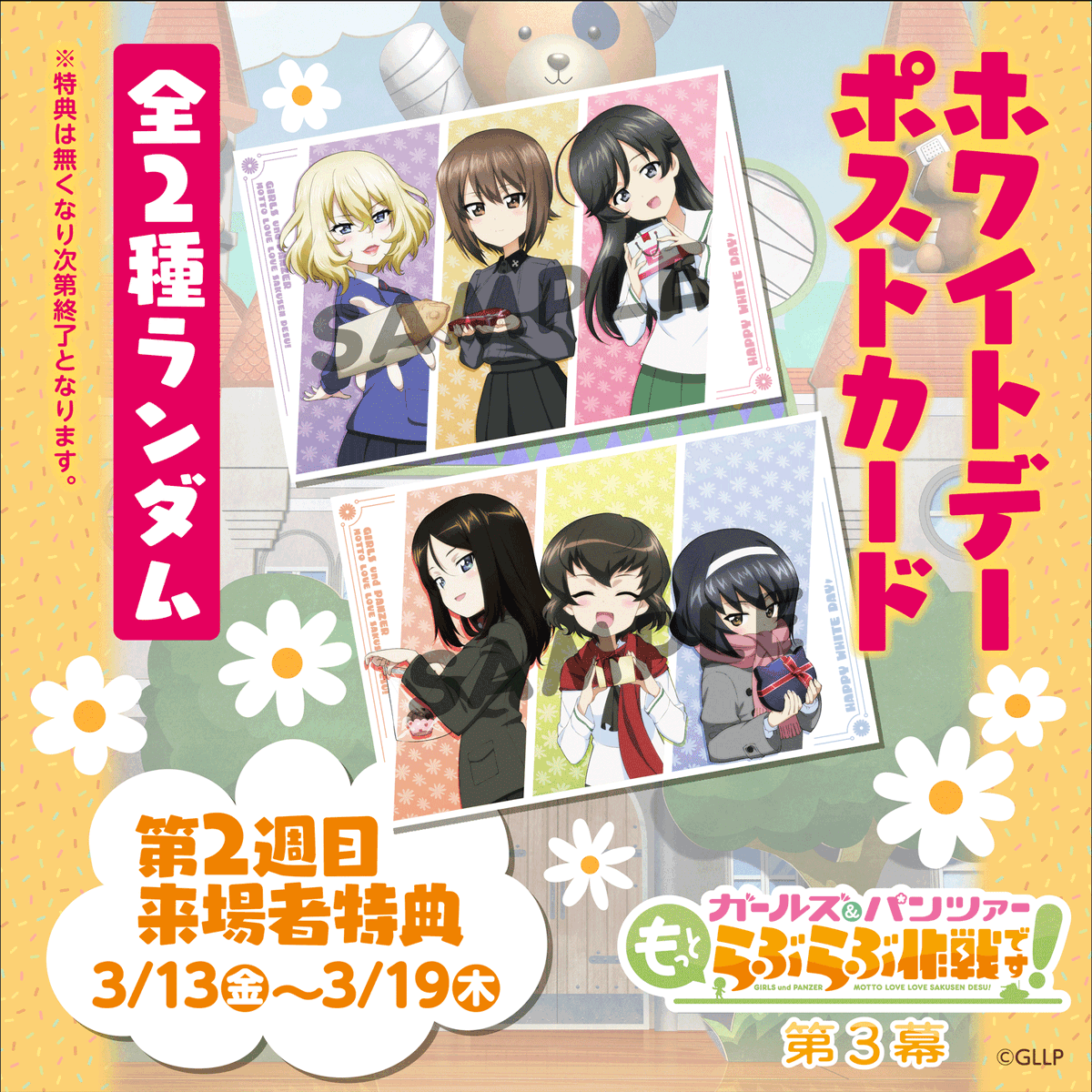 https://gup-mottolovelove.jp/theater-3/visitor-benefits/theater merch for Act 3's 1st and 2nd week revealed