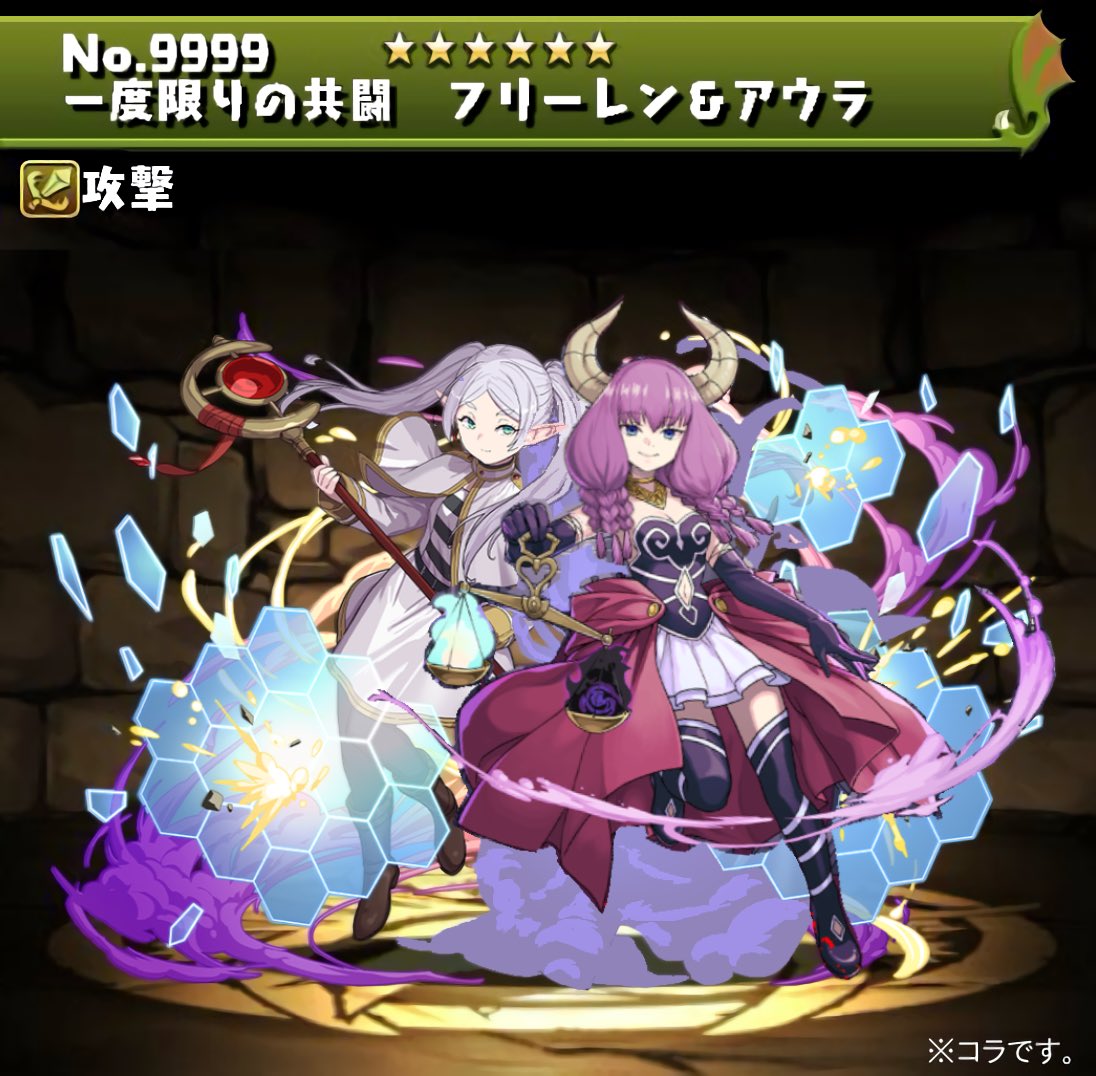 >>286213234also this picture is an edit of card number 13465, Frieren and Fern (reward version), with Fern replaced with a flipped version of Aura from card 13466
