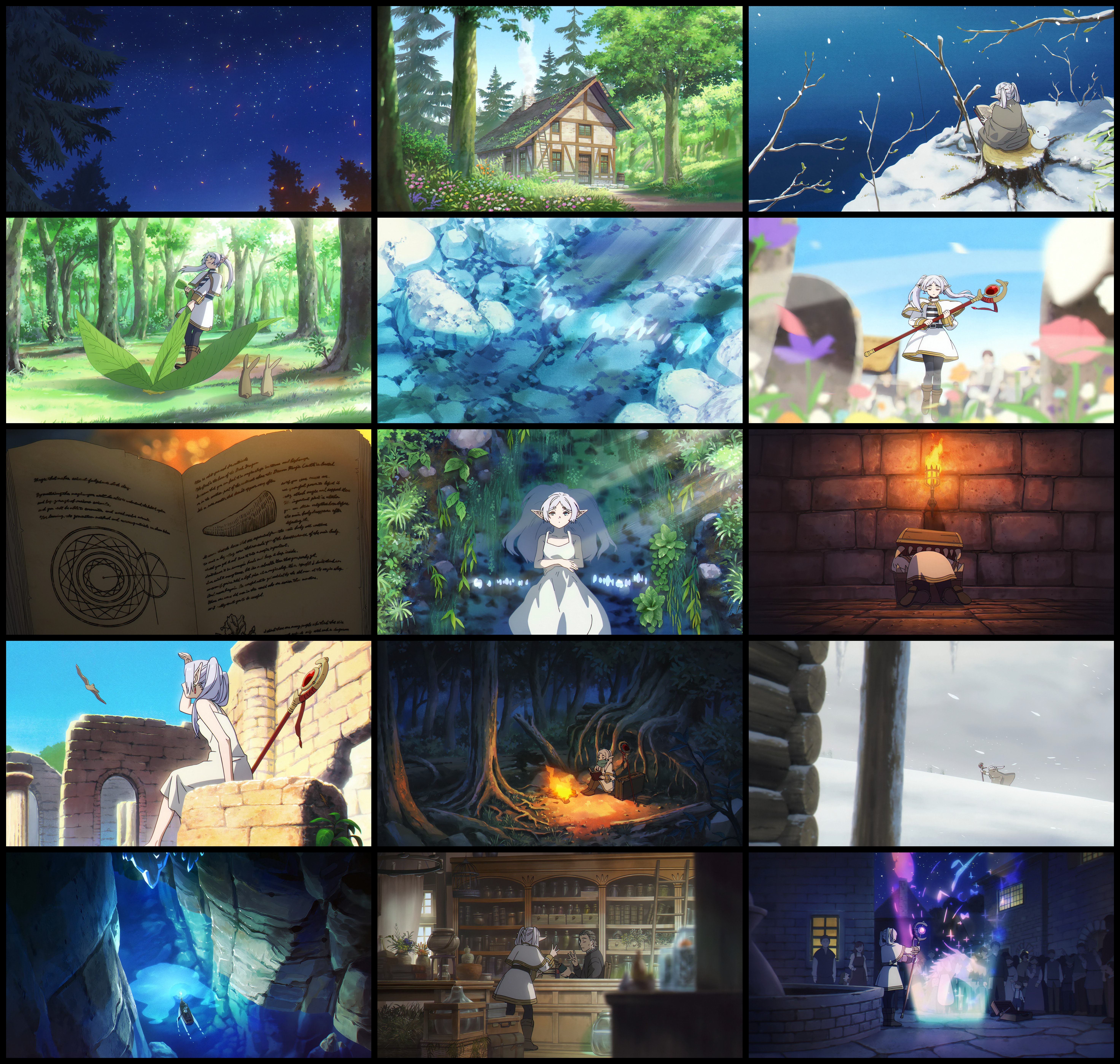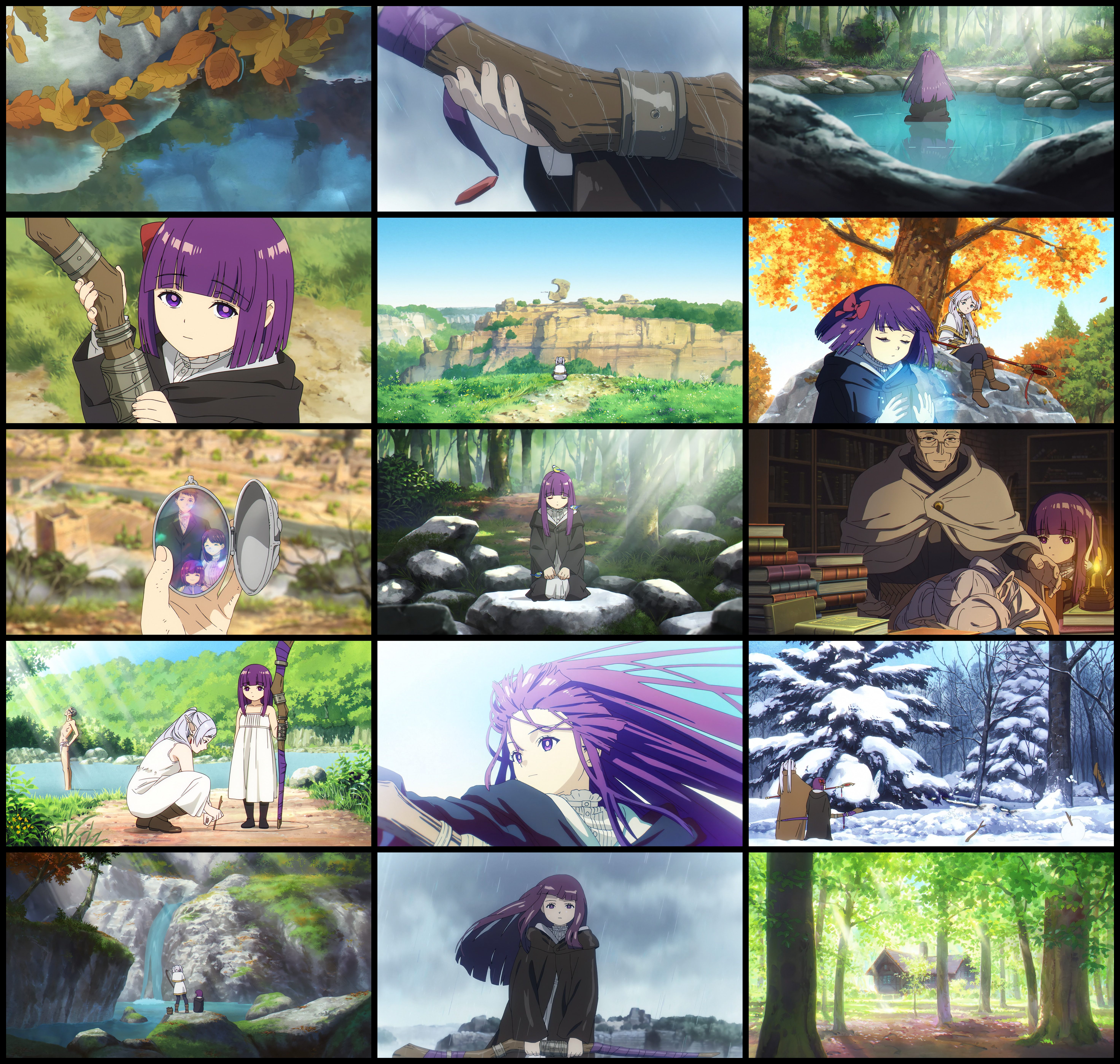 I've been sharing the collages I've been making as I'm working my way through my screenshots of season one. I just reached the episodes where they meet sein. You've probably seen them already but if you've been in the non-friday threads throughout the week, but I figure I'll share them all now, too. Since there's no episode todayThe first is frieren's montage of traveling alone in ep1