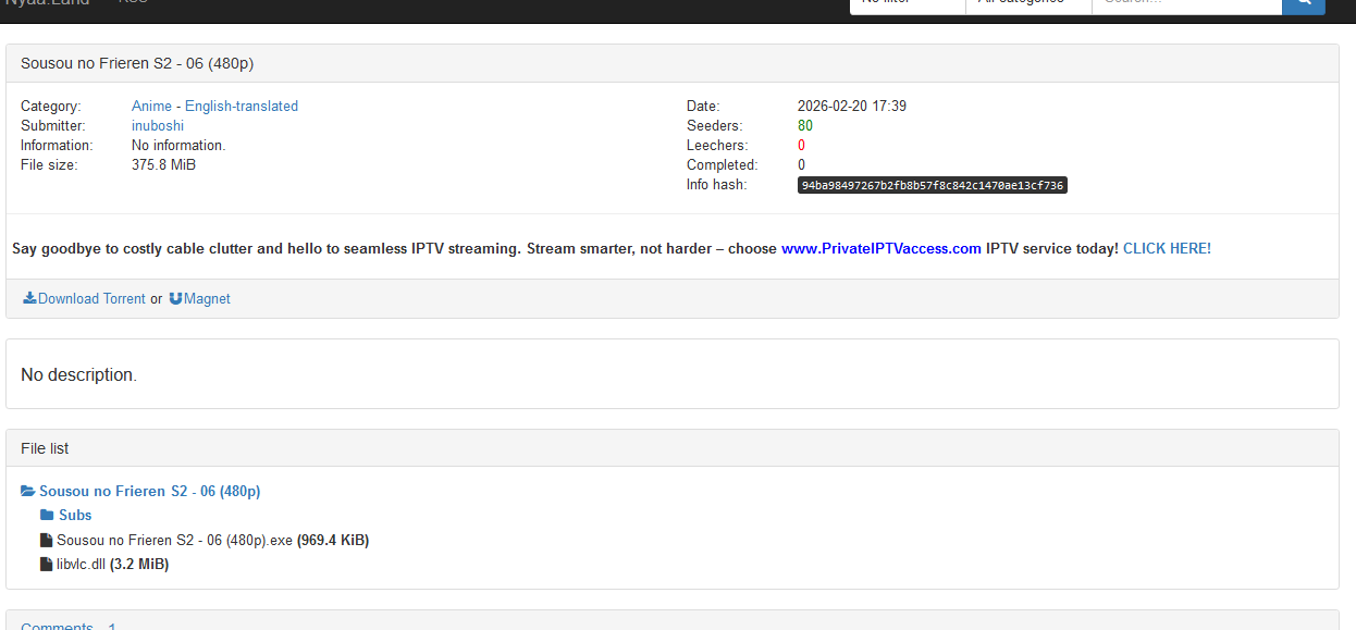 Someone uploaded Frieren S2 06.exe to nyaa