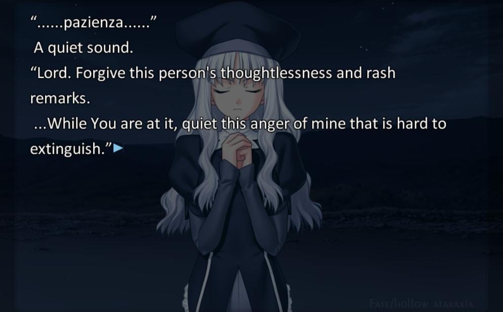 >>286214958I really, really wanted to enjoy FSN but it's just dump after dump of exposition textwall. I tried. I read through the whole Saber route.The annoying way the text box covers up the screen doesn't help. I can't stand when VNs are aligned that way.