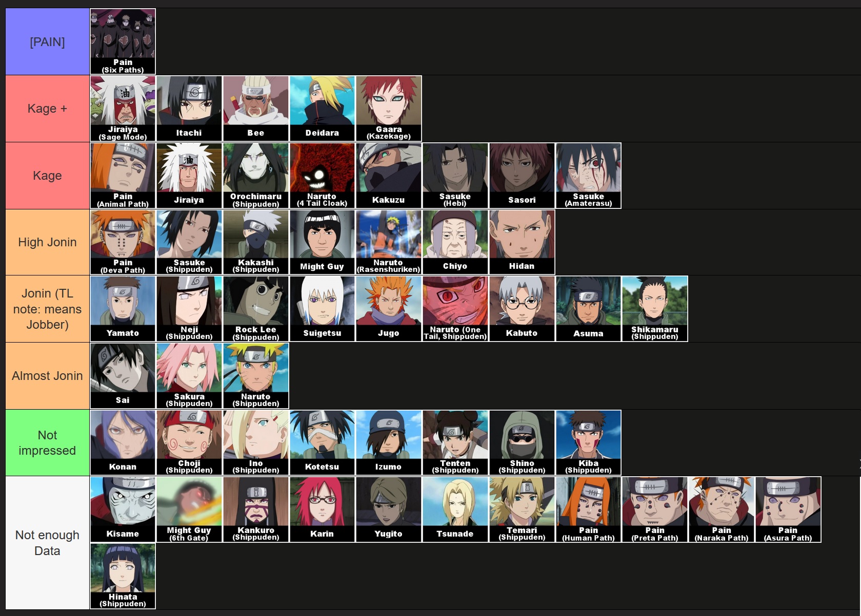 >>286220021I always thought Kishi had the Rinnegan being like the height of all the shit in Naruto and it's one of the reasons for the influence of buddhism in itPeople use nature transformations, tendo lets you use like nature itself with gravity and lets you just push and pullPeople use scrolls and blood n all that for summons, chikushodo lets you summon just a bunch like nothingPeople have walls and barriers for blocking, and some can absorb chakra sometimes. gakido lets you do all of that in one and is a total counter to almost all shinobi.Edo tensei takes all this effort and soul stuff is super rare and strong and forbidden, Ningendo gives you like full control and is a total counter to Edo tensei It can see invisible barriersGives you all nature transformationLets you summon gedo and use the chains to take control of all the tailed beastsSo shurado is like the height of tools, bombs, kunai, any real physical stuff made given the level of tech they haveIt's a mech that can use literal missiles and lasers with multiple faces and arms so it makes most all other tools and weapons moot.