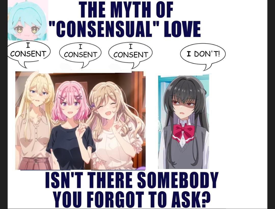 >>286220245>Meguru tells Azuki everything and they reconcile. She agrees to try to be open to being physical if she’s patient with her >Remu tells Niji everything, they talk about the fanfic and how Remu isn’t the perfect doll Niji’s conjured up in her head, but she’s willing to show Niji the real her. Niji has a bit of a breakdown and admits some fault. They start datingHappy endings all around but obviously rushed as hell even if you didn’t already know why the plot was slamming on the brakes so hard