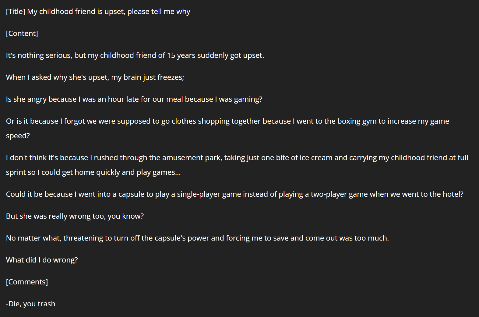 >>286244447the scenarios getting shit on itt are nothing like this