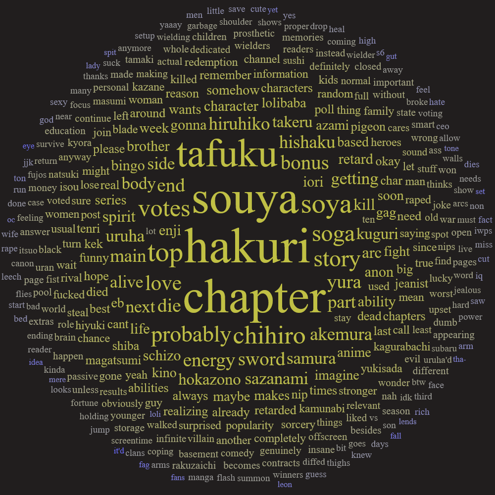 >>286260888>Survived his duel with Hakuri>Devotes himself in finding HakuriHim never appearing in the main story again would be bizarre unless he gets some pussy and gets over his obsession with Hakuri in a bonus chappy.