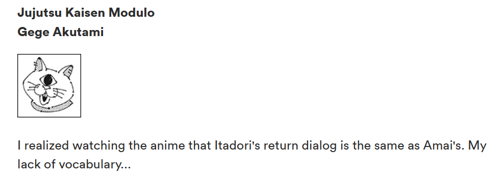 this shit is ass from a butt but when the next chapter shows yuji one shotting mahoraga you will all pretend like modulo was always good