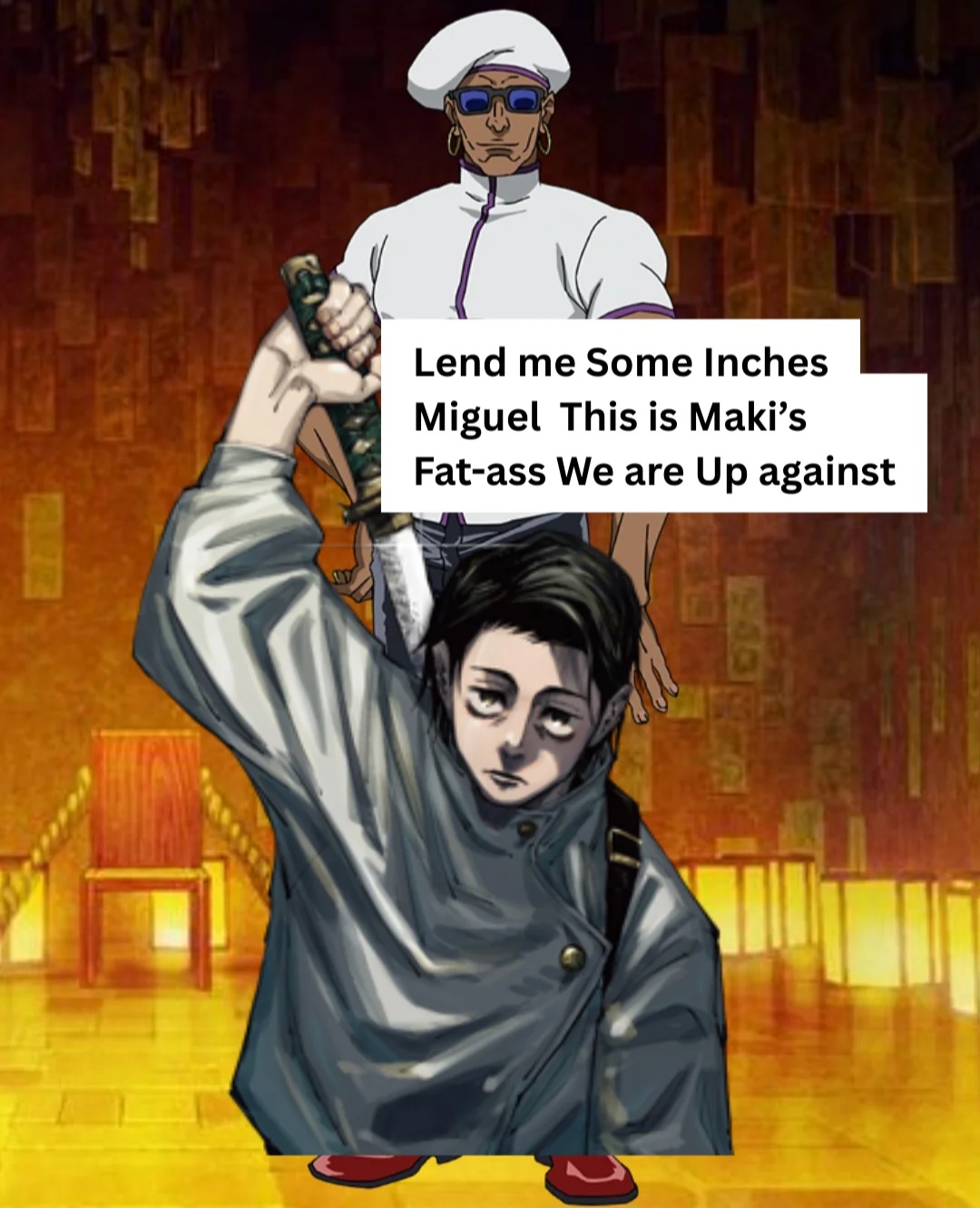 In another story, rather than Maki killing the Zenins, it would be a character trying to console Maki for the loss of her sister by giving her tons of relatives by molesting all the Zenin Clan and impregnating them.
