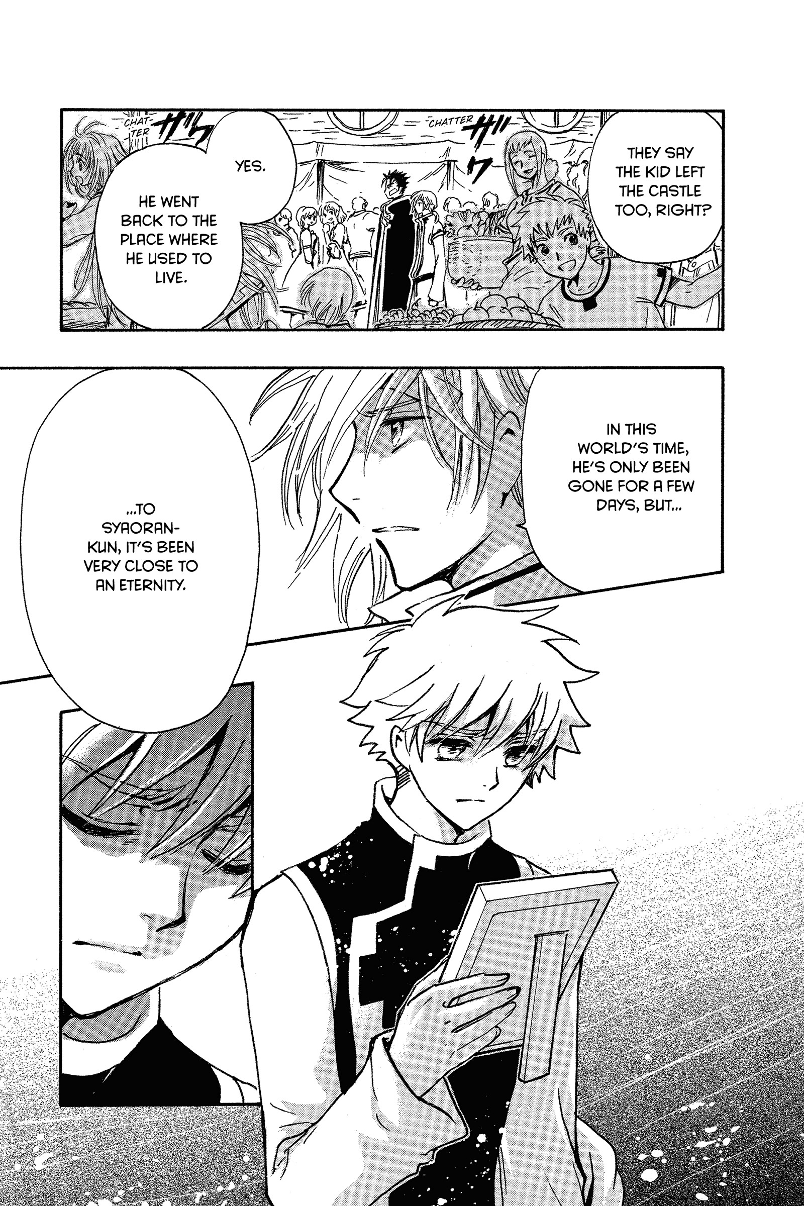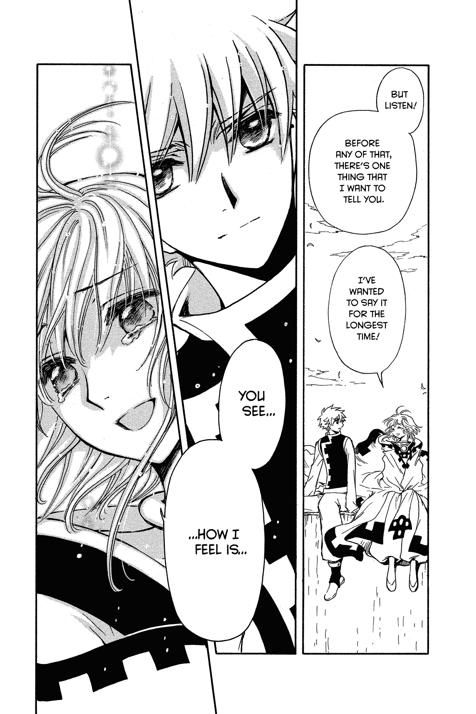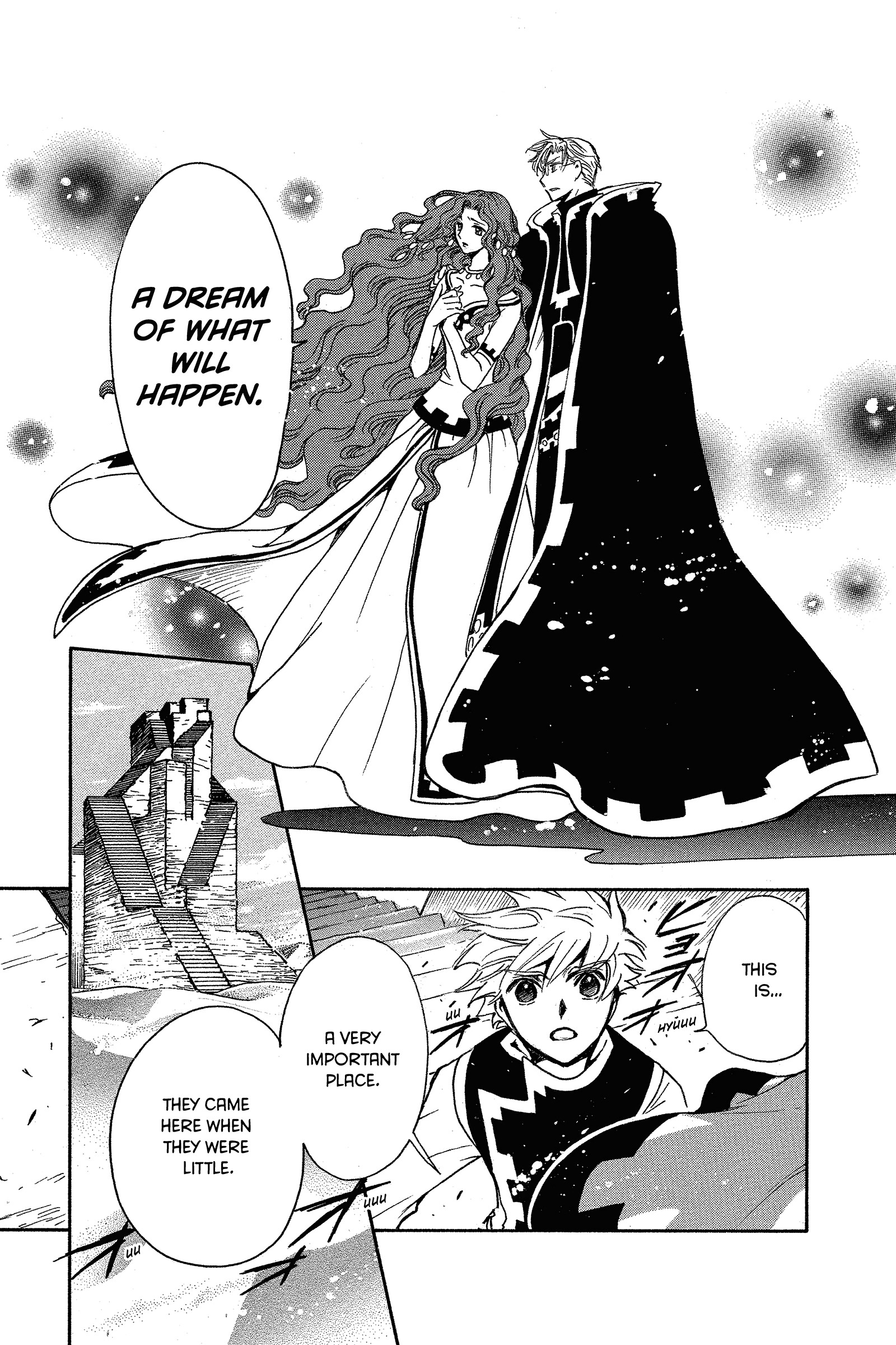 It's not that convoluted but CLAMP was so weird with how they handle flashback/dialogue.