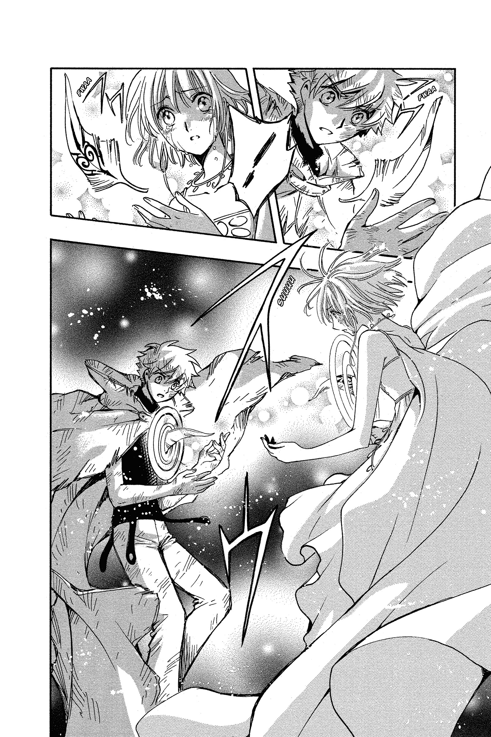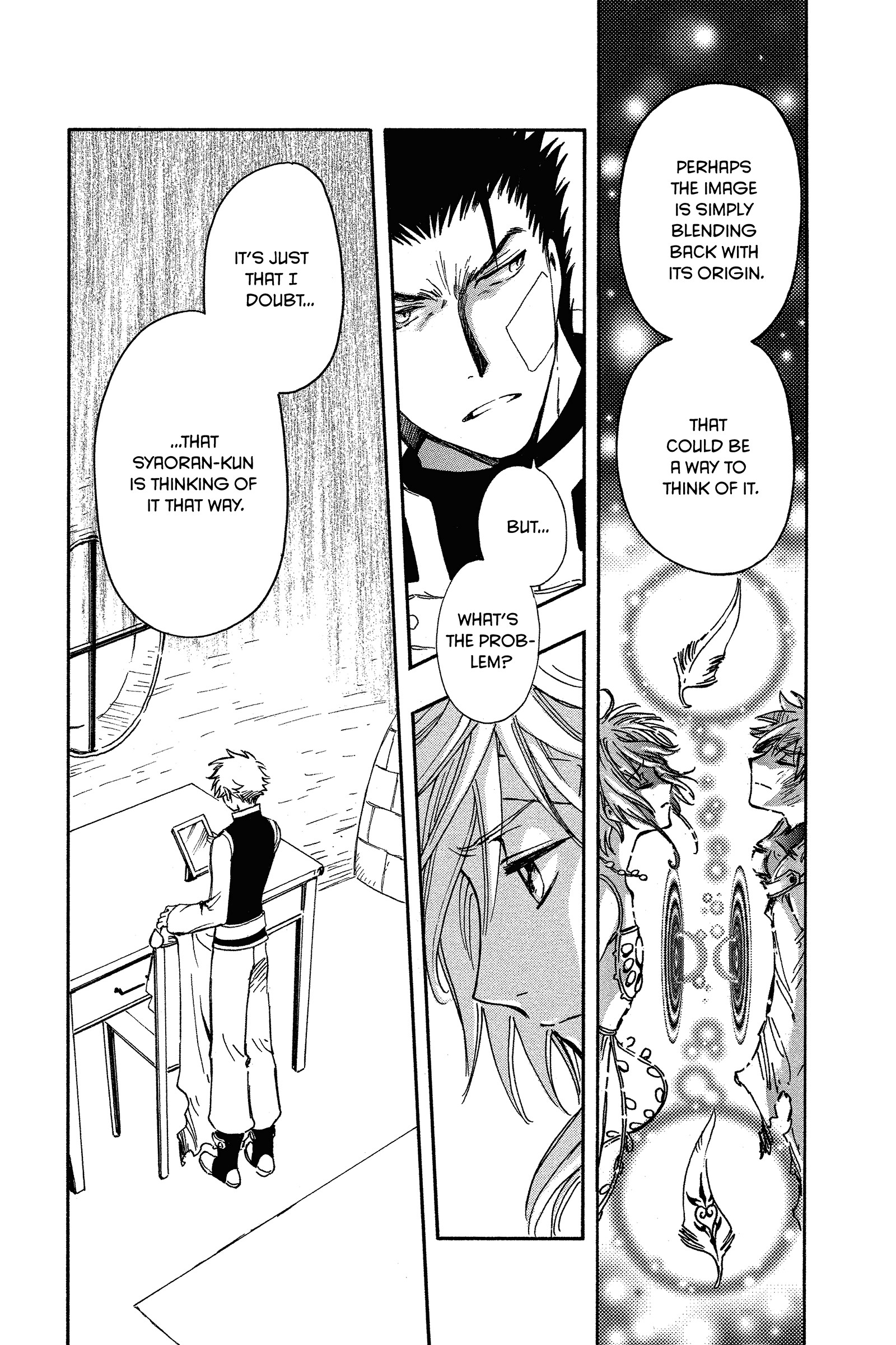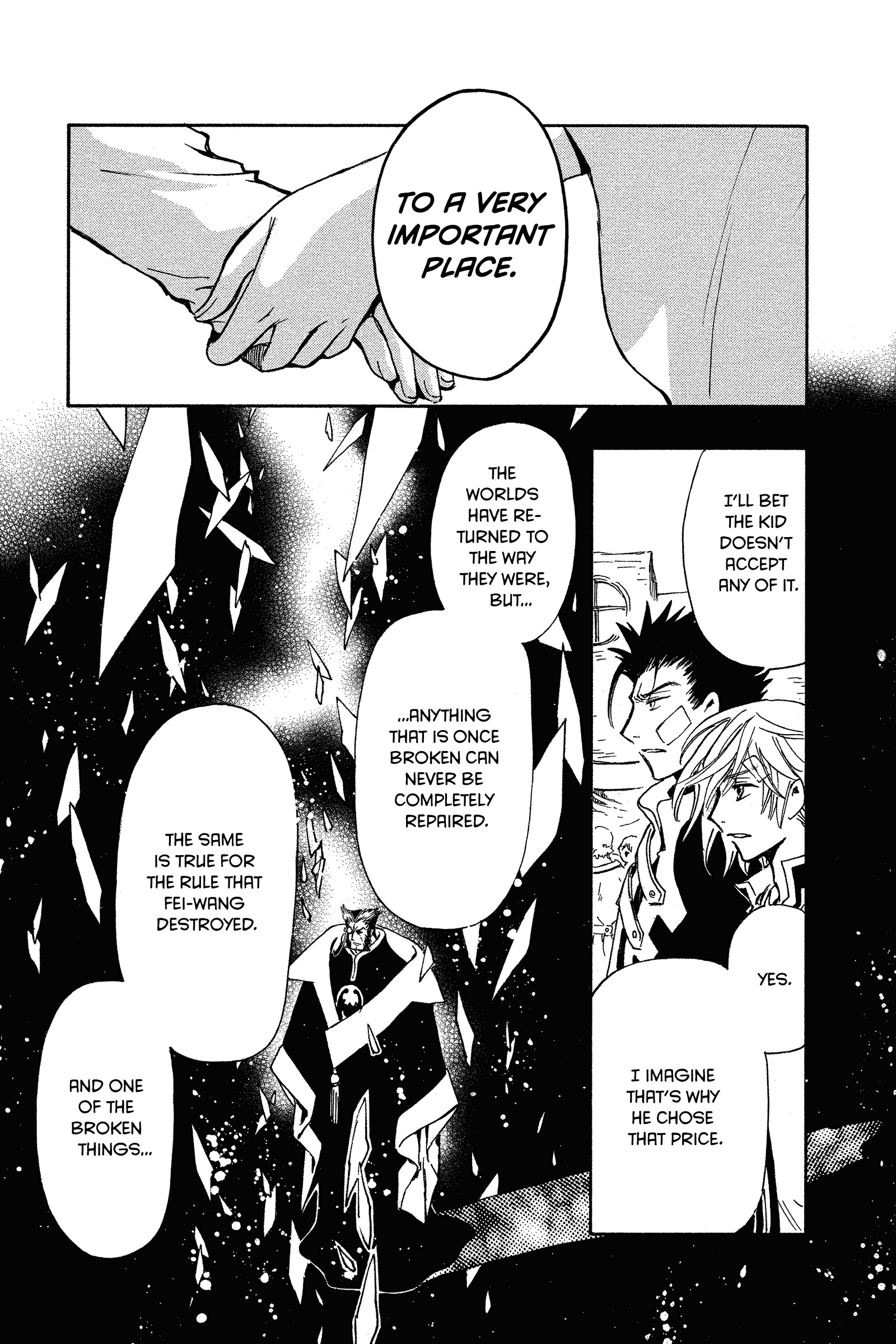 It's not that convoluted but CLAMP was so weird with how they handle flashback/dialogue.