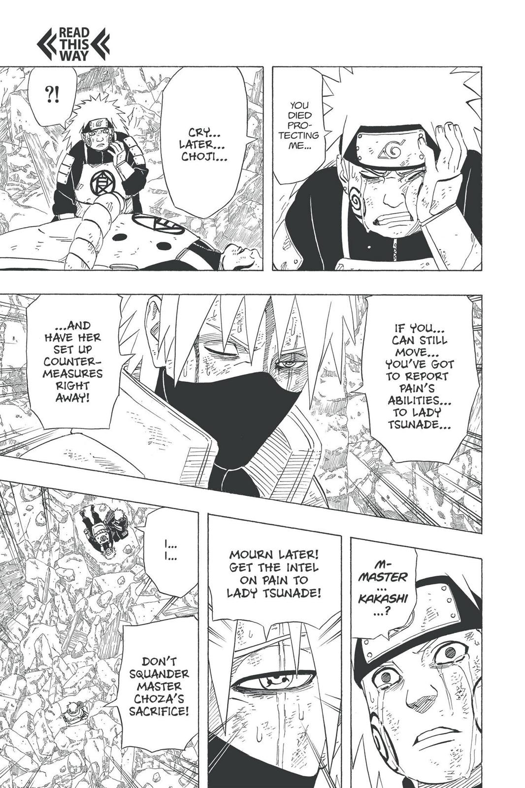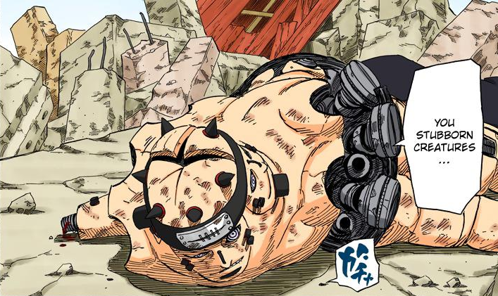 >>286268238It's a shame this guy is such a walking strawman. There are legitimate reasons that the special ops guy might come to the conclusion that a coup is necessary, and if you're going to retcon the uchiha massacre they way they did, the retcon would at least tie in nicely. Sasuke vs Danzo would have had a lot more weight if Danzo was already wrestling with the fact that he eventually followed the same path as Sasuke's dad.>>286268255what the fuck is this now? This better be a metaphor and not some pocket dimension where they take the guys brain and somehow use chakra to make it shit out scrolls.>>286268411>we'll figure out who pain isI don't see why that matters, much less how it should help. Does she mean to say "identify the real body" and the translation is just bad?>>286268489>>286268511There was never any reason for Kakashi not to rip Pain in half with this attack the moment he laid eyes on him. Remember, he had the drop on him. But putting that aside, Choji really couldn't avoid this? Or tank it? Everything is so contrived, nothing happens in this story in a natural way. It's just random bullet points for a story outline mashed together. The middle parts are cut out the same way the fights are. Also, Kakashi dies two chapters in a row, the readers will be double shocked! Ugh. "kino" they said.