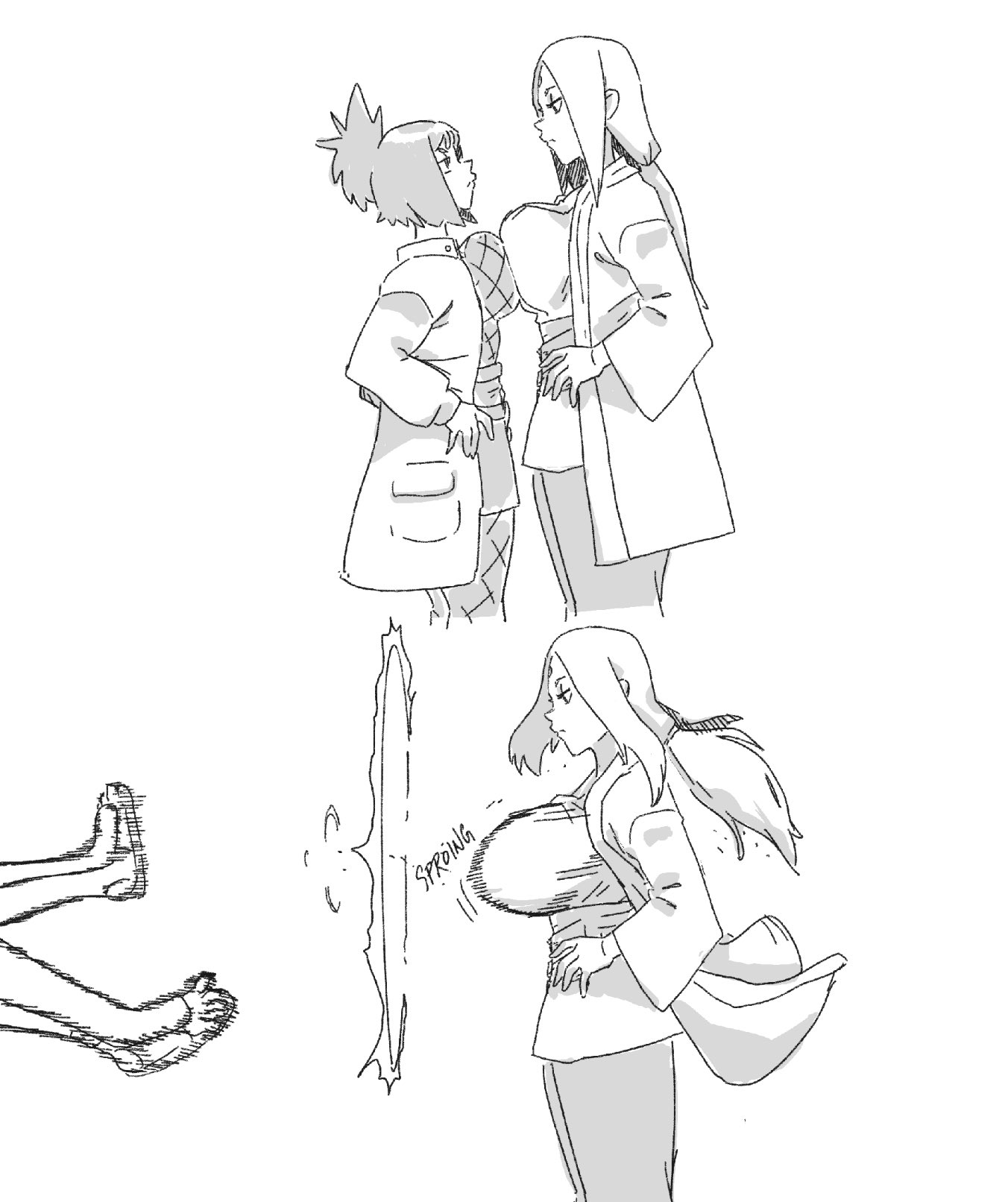 It's funny how often Kishi recycled the same team composition throughout the series. Maybe a stretch here an there, but I see obvious parallels almost every time. Besides the group leaders, we have>the silly/cheeky type, usually seen as less competentNaruto, Lee, Kiba, Choji, Kankuro, Jiraiya, Yahiko, Obito, Suigetsu>the prodigy(?), usually more uptight and/or gloomySasuke, Neji, Shino, Shikamaru, Gaara, Orochimaru, Nagato, Kakashi, Jugo>the girlSakura, Tenten, Hinata, Ino, Temari, Tsunade, Konan, Rin, Karin