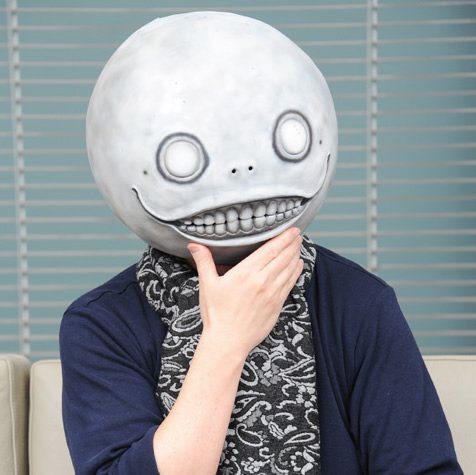>He specifically wears the Emil mask because he says Emil is a super important character to the NieR world who is hiding some big secret and he'll continue wearing the mask until that's out or something (I don't remember his exact words but no one in the fandom knows what he's talking about).