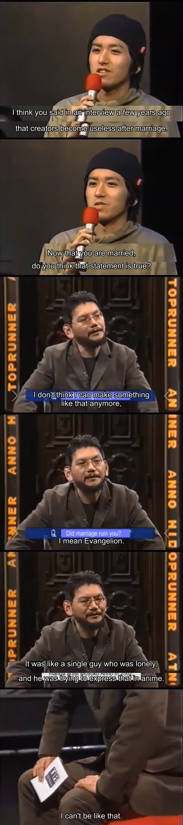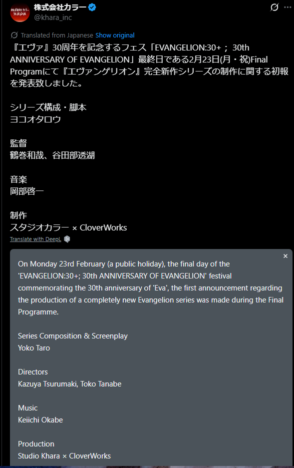Eva should have ended in 1997 and Anno moved on with new anime instead of trying to remake all his childhood IPs. All of them sucks (ShinGoji is ok, I guess, but not as good as people claim)