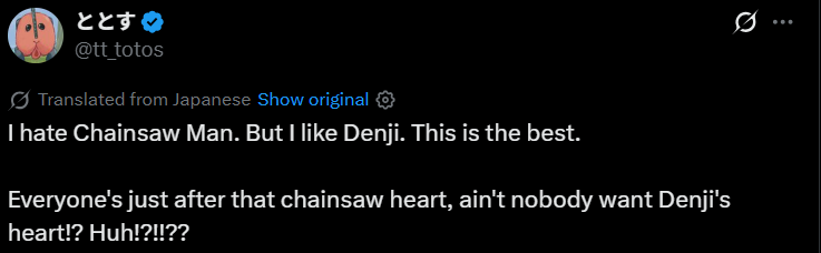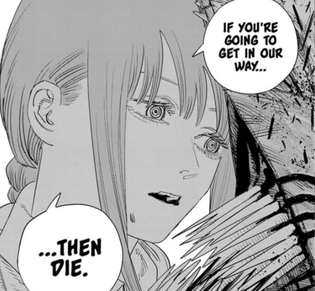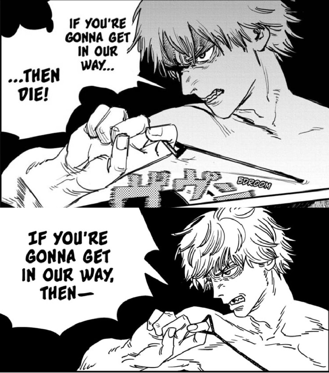 >manipulated by 3-4 evil chicks (Reze, Makima, Fumiko and maybe Yoru) because he's Chainsaw Man