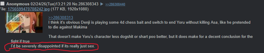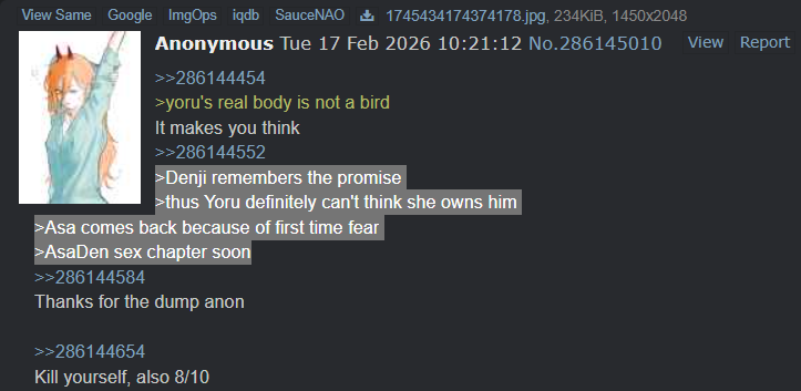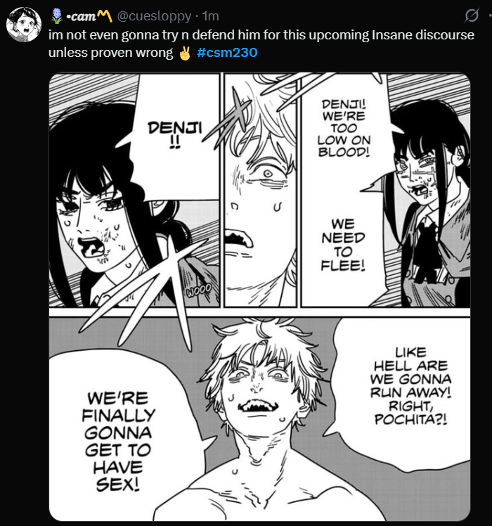 Denji shouldn’t have sex, he should find purpose in life another way like Onizuka and Kurosawa but I doubt Fuji is leading to something like that. He’s a cuck with a humiliation fetish