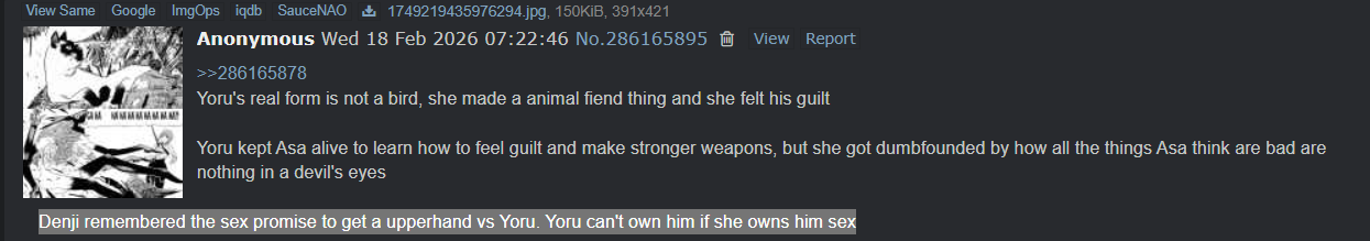 What if people become afraid of the SEX devil because now that nothing dies having more things being born just makes the world suck more. What if Denji has to fight SEX itself