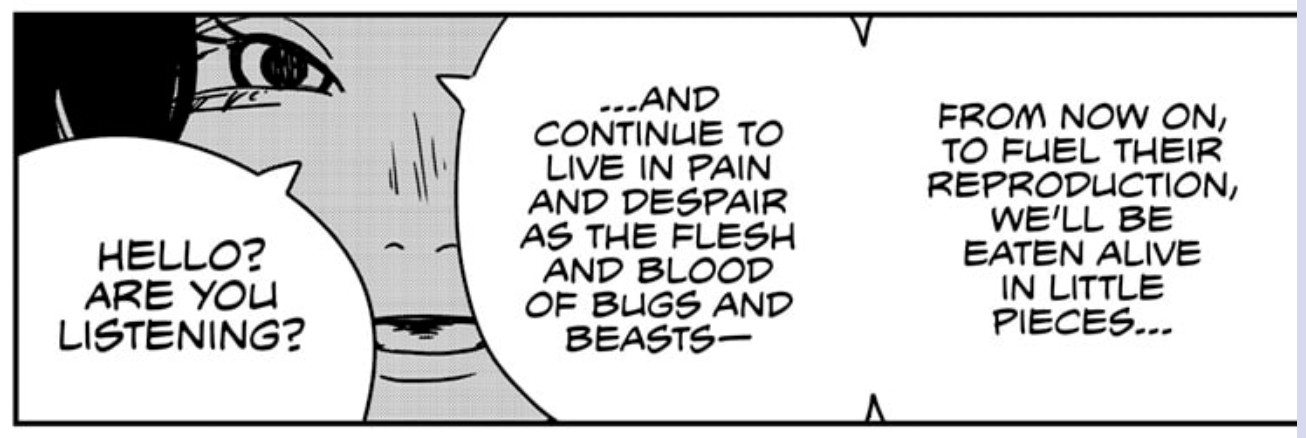 This chapter made no sense whatsoever. Why would eating humans make them reproduce and how is that related to them not dying? Complete retardshit.