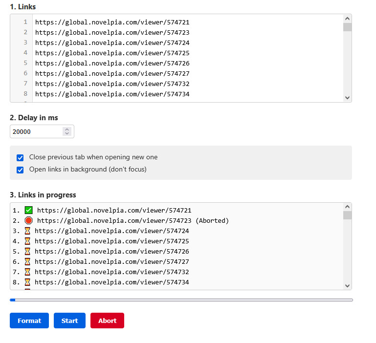 >>286352820I too have a JS script that takes list of chapter URLs, to rip novels within same browser session. For stuff that's behind cloudflare and such.