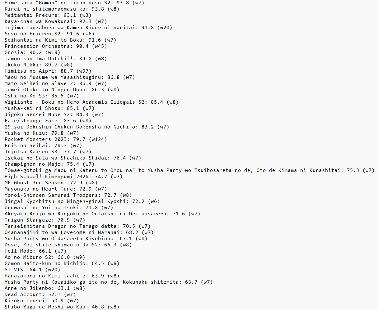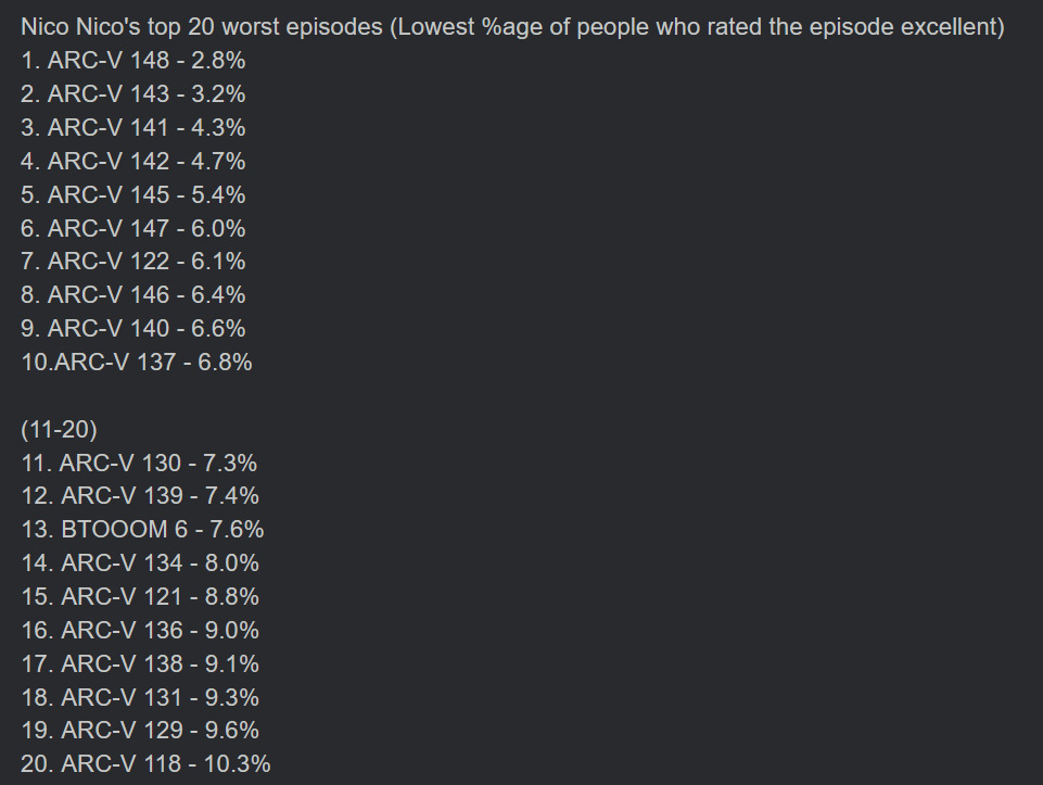 >>286383689>>286385608If only we could go back to the glory days of arc-v and kemono friends season 2>>286385979Higher viewership usually leads to lower ratings.