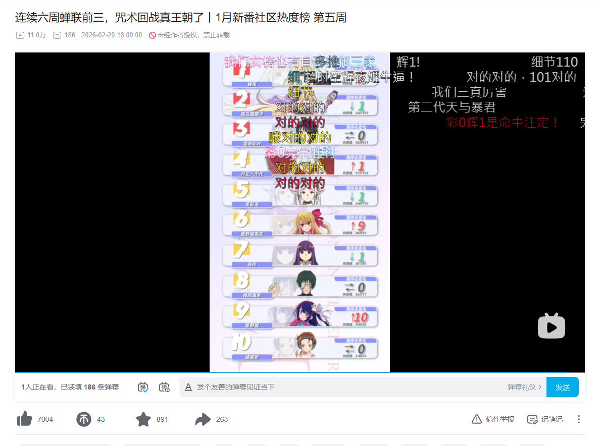 Anime big data compiled by Bilibili's official account.