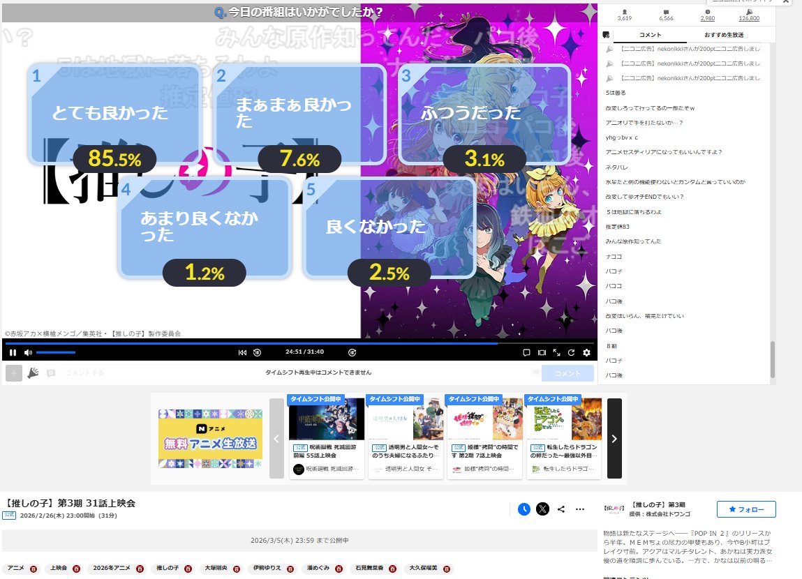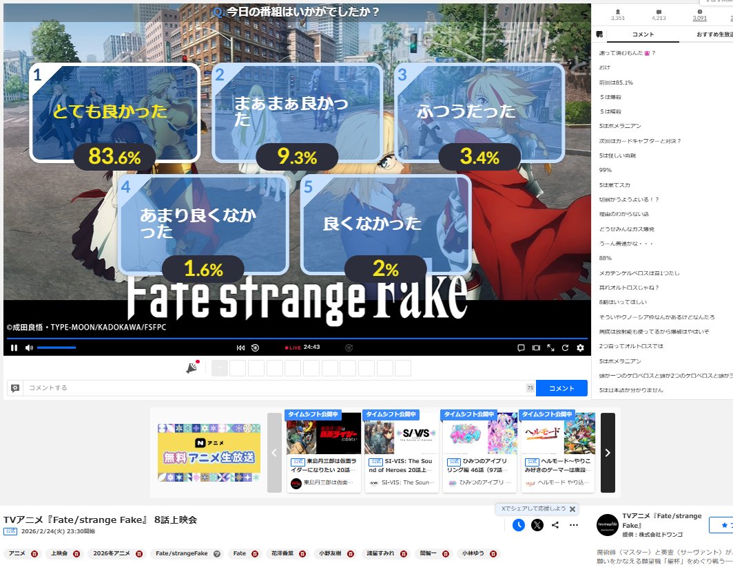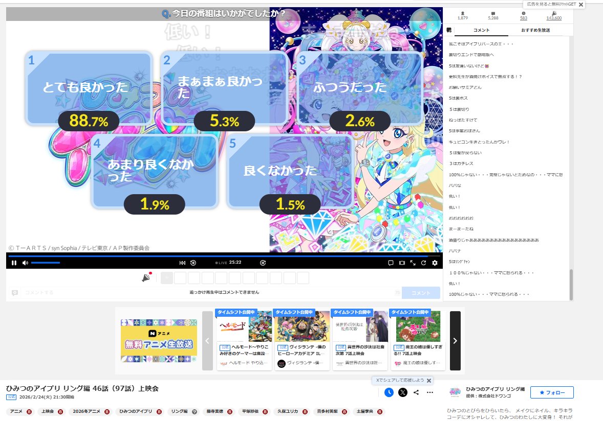 Current percentage of Nicolive voters that gave the latest episodes of the currently airing Winter cour shows top marks, making for a decently accurate popularity ranking list.How do their tastes measure up to your own, anons?