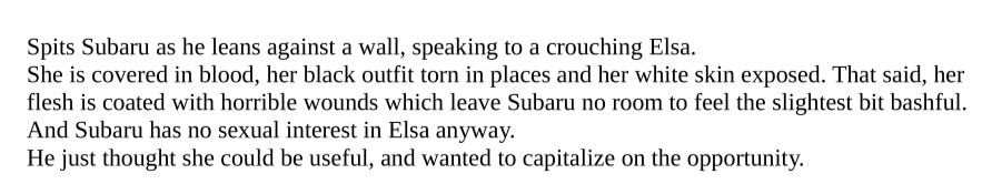 Just started reading Arc 10 and holy shit Crusch cannot stop taking L after L. It’s hilarious in a fucked up sorta way.