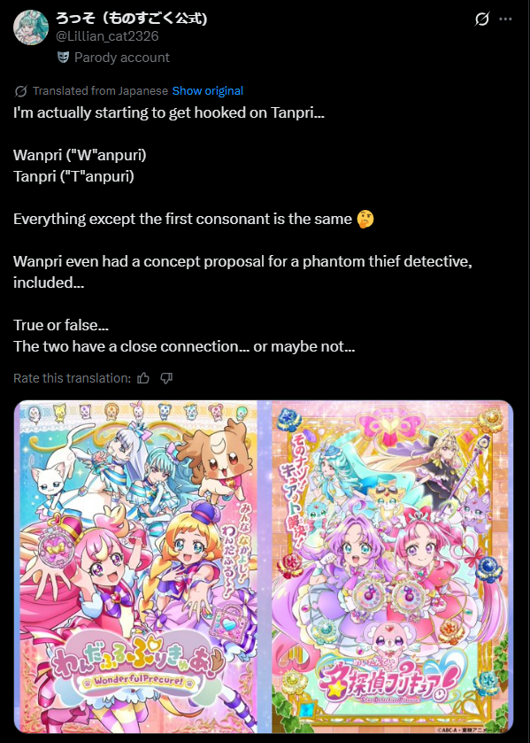>>286496850Theyre both fairly original concepts for a precure season.