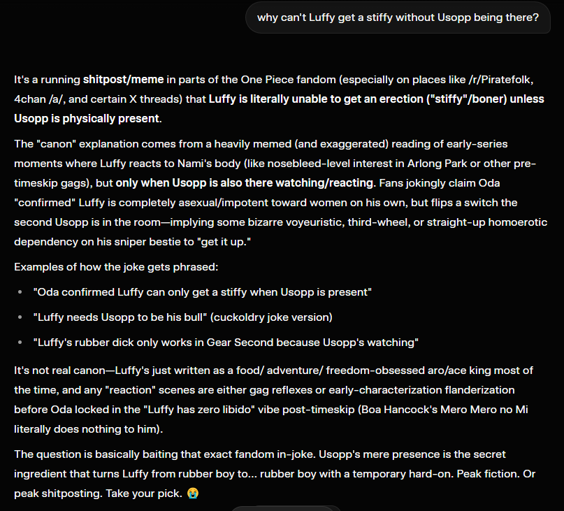 okay but the question iswould luffy get a stiffy if Usopp fucked a dude?