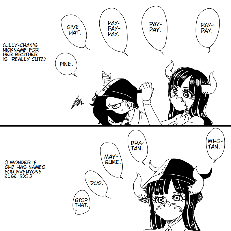 >>286531924>remember the autist who would get mad that Ulti and Yamato interacting in fanart, insisting they wouldn't be friends and now all that fanart is canon?Yep. At one point they even started larping as a fan of Ulti. It doesn't matter, because it all ended up becoming canon. >>286531970>Do you think Oda had any idea of just how fucking likable he was making these characters when he was writing them?Oda started with that needlessly detailed SBS about Ulti being smart enough to steal devil fruits for her and Page One, it grew with the anime casting for Yamato and Ulti, consistent fanart for dedicated fans and eventually Hanafuda reveal and the cover story. I think at most he planned for the Tobi Roppo (specifically Who's Who) was to be the one who would become popular. The swerve with Drake being a traitor messed it up, but all that could be blamed on ACT III's pacing.
