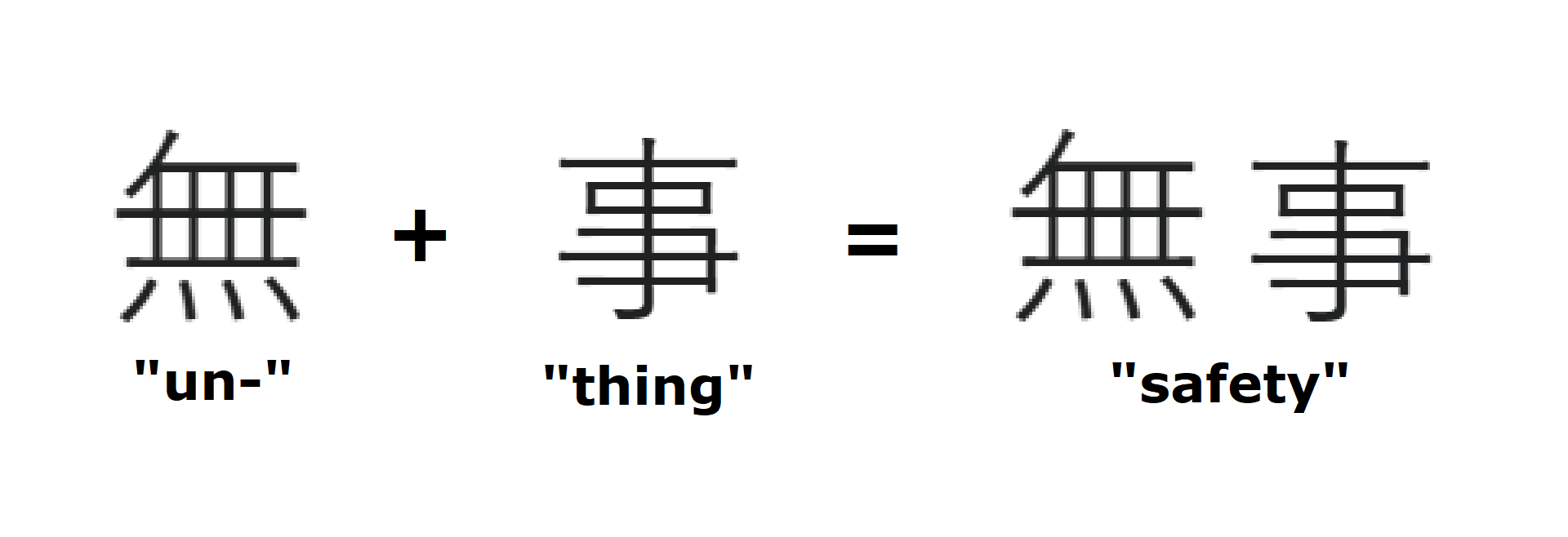 >>286527520Japanese has two words for thing 物 for physical objects, and 事 for events物 would be used for "what's the thing that rabbits eat?"事 would be used for "you know that thing where you hit your pinkie toe on the edge of the table?" 無事 would literally translate closer to "no event"