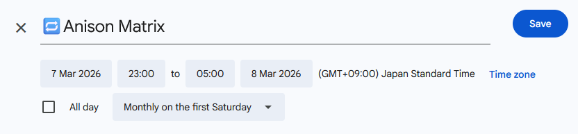 Welcome back to the first Saturday of the new month! We have three guest DJs again this month: KOTONOHOUSE, Ray_Oh and HITORI. Kei and Hokboy are off this month. Late thread because lolmaint.Nuke the thread if duped.GET IN HERE23:00 Chefoba23:45 oblongar00:30 Ray_oh01:15 KOTONOHOUSE <- Here02:00 melo02:45 Hitori.03:30 oddrella04:15 D-Yama▼ VJDeLPiCOCOA*For more info:https://club-mogra.jp/2026/03/07/8740/For the Anons, Janitors and Mods that doesn't know what MOGRA is:MOGRA is an anikura that stream of UNTZ in a club in Akiba. Although they are a rental venue, they are known as an otaku club by many. Pretty much all the music played in this event is anison related from vanilla to remixes of ANIME series. This club has been a part of /a/ for well over a decade and even has been sticked multiple times including the most recent New Years event: MOGRA COUNTDOWN PARTY 23/24.https://desuarchive.org/a/thread/99333924 (Sticky I)https://desuarchive.org/a/thread/99338787 (Sticky II)https://desuarchive.org/a/thread/261235430 (Sticky III)https://desuarchive.org/a/thread/274660470 (Recent Sticky)The next ANISON MATRIX will take place on April 4th at the usual time.