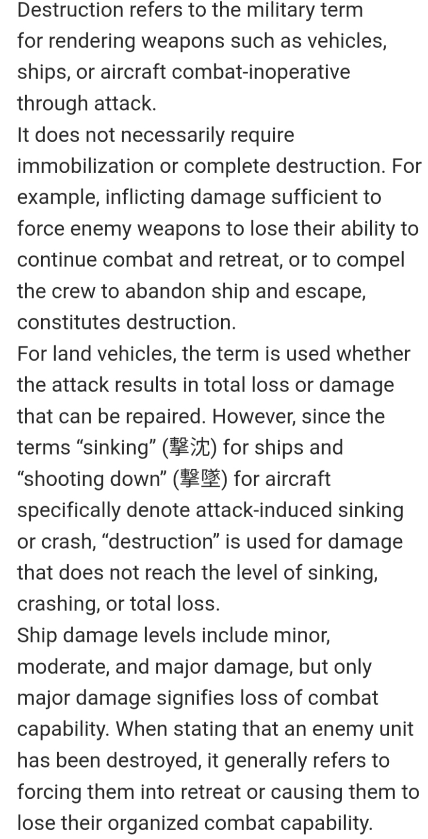 >It refers to rendering enemy units, weapons, and similar targets incapable of combat and unable to move through attack—in other words, neutralizing them
