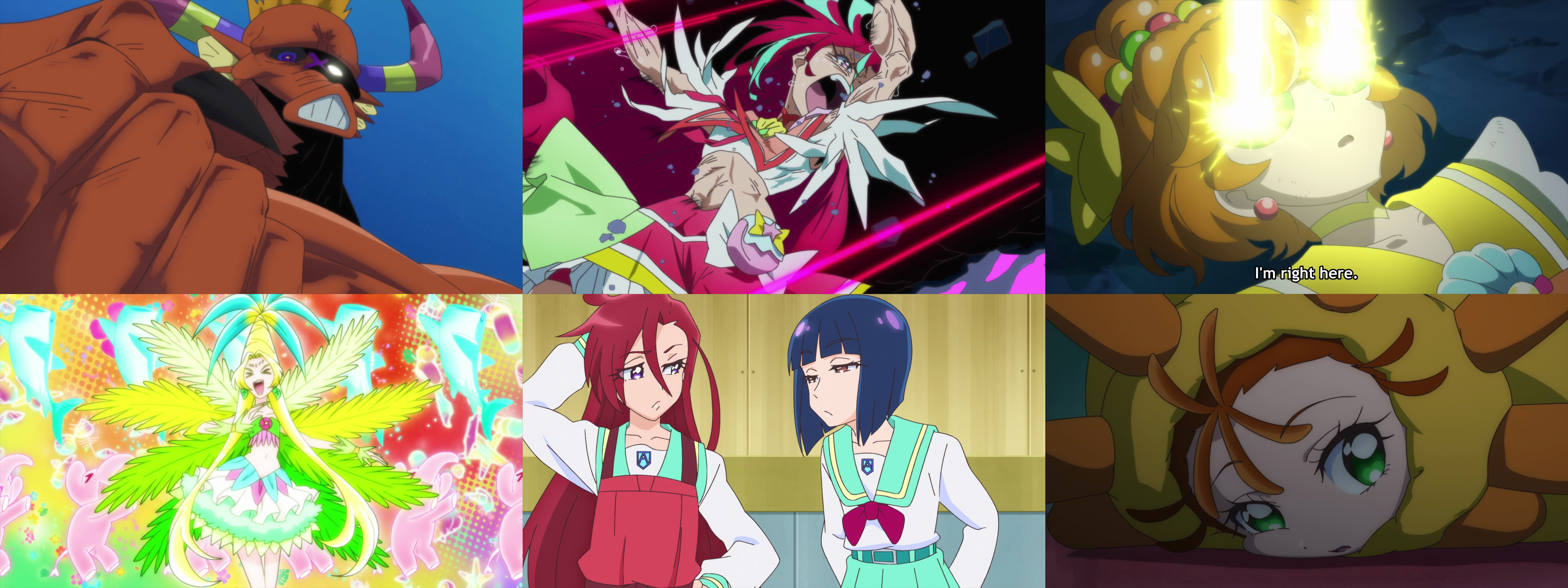 Ep 45, final battleFantastic episode, nonstop coolness and stupidity. Super cool animation and art. Poor Butler couldn't last even half an episode, and now he's just a fucking zombie with 0 motivation. Good decision, but it's still so harsh coming from Precure. I liked the detail that the monsters summoned by Butler have a different name for being the ones created before the Witch of Destruction became the Witch of Delays. Having one episode left was good to give the characters some time to breathe before the finale, and it had a pretty good cliffhanger here.
