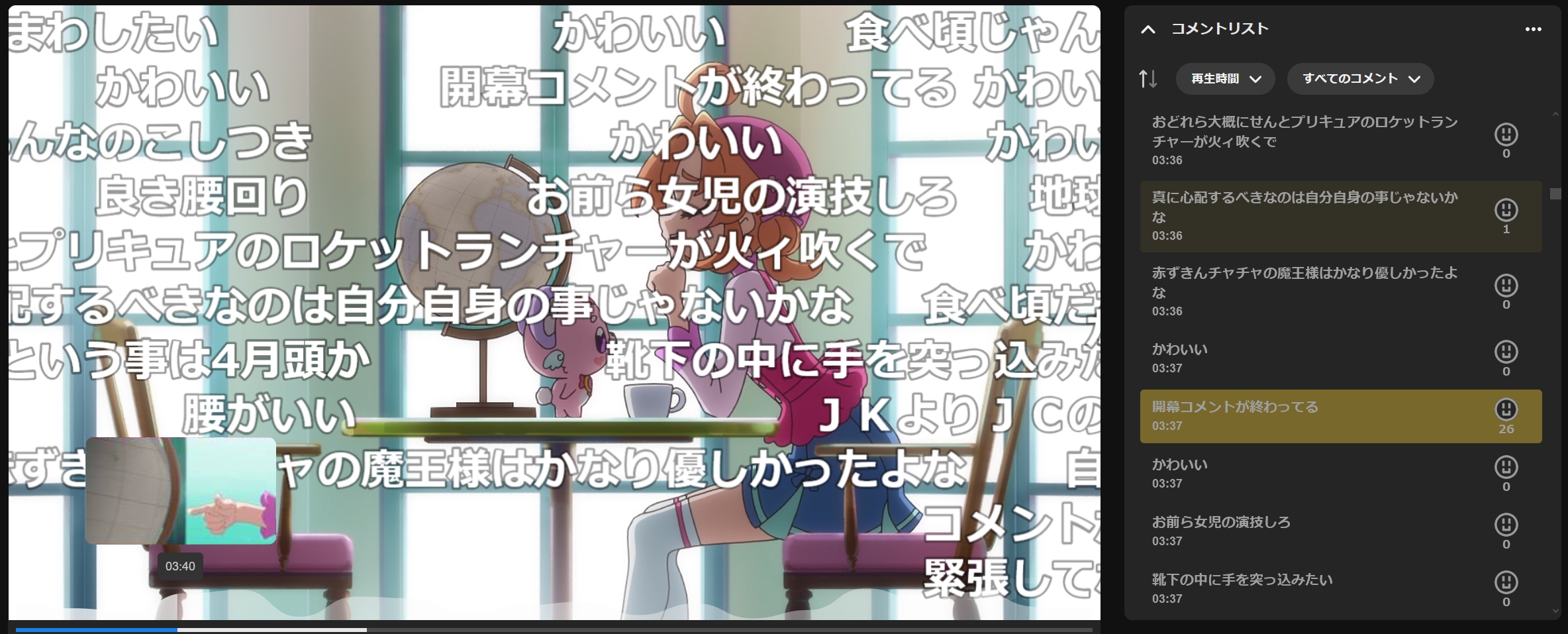 >>286620151That reminds me of how supposedly in DP there was a TR seashell hidden in a frame>>286621654>ButlerI remember how in this scene >>286620040 he let out an exasperated "bleh....." and I thought it was funny. I'm sure he'll eventually gain back his motivation thoughI forgot about the wacky Oasis cameo in the final battle>>286622156>I think this season's finale is one that could have benefitted from having a timeskip before the reunionI agree on that. I think that because of the pandemic that occurred the previous season which pushed the start of the season later, they had to squish in what they had wanted to put in the final episode. the finale should have been 2 episodes, in my opinion.I think Sango, Minori and Asuka had their fair share of episodes. My favorite TR had swapped between these three during my watch. The season is fun and wacky and there were too many good episodes. If I had to pick just one memorable highlight moment it would be when it turned out that the Summer, Coral and Papaya were willing to chase Asuka's train because Asuka forgot her safety pillow, it really showed how much they cared for each other. What were those 3 favorite episodes that you mentioned?>Now I can finally watch All Stars Fwow does this mean you've watched all of the pre-F seasons? Congratulations on making it that far on your Precure journey