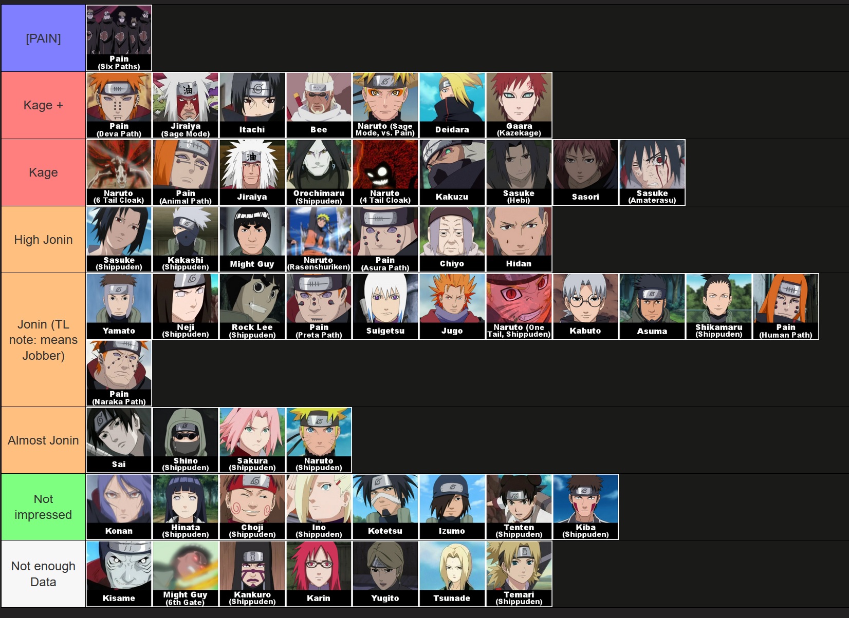 >>286637718How do you not have enough data on Tsunade? This invasion is basically her showing as a Hokage. You should be able to put her somewhere.