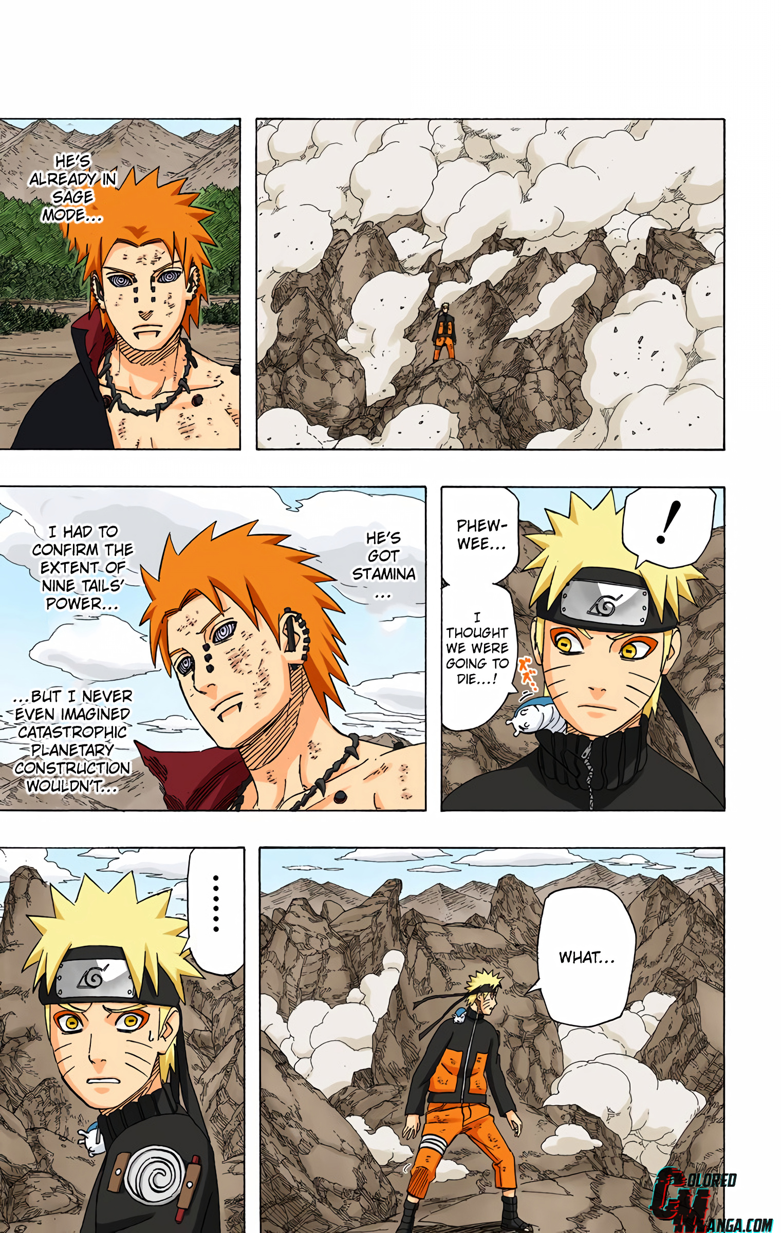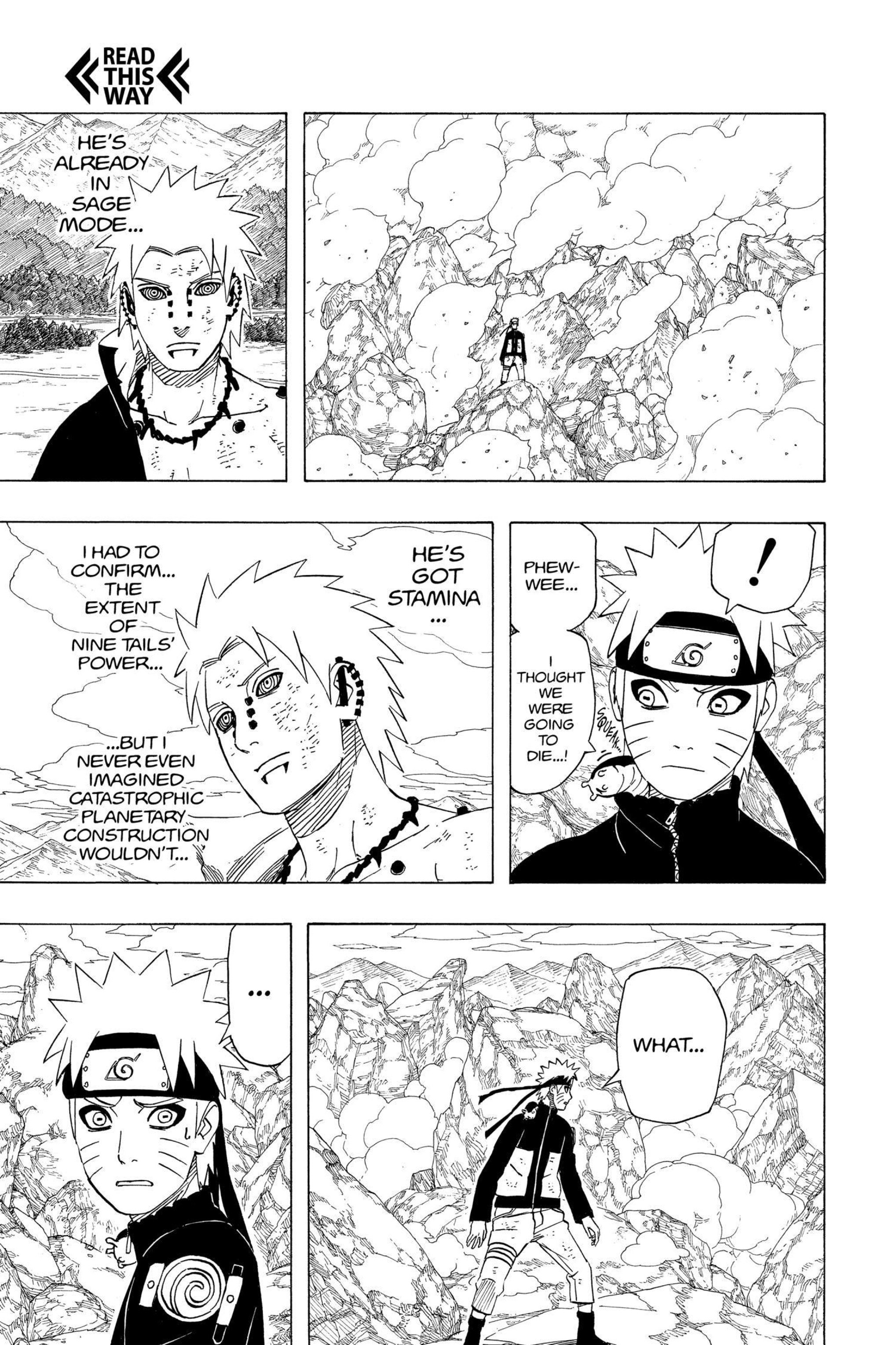 >>286666328No, as you can see he went>UghAs in "fuck, this is a new bad unforeseen development". He is currently in sage mode, if he didn't make the moves to get in sage mode himself and got it from nowhere he'd know it was from the clone. But he was surprised to see he lost Sage mode. Because he got into sage mode on the spot by himself, and then sensed he lost his other clone.In fact this "Ugh I lost my clone" panel is foreshadowing for Naruto seeing he's not limited by clone batteries anymore and making clones to hide in the rubble.