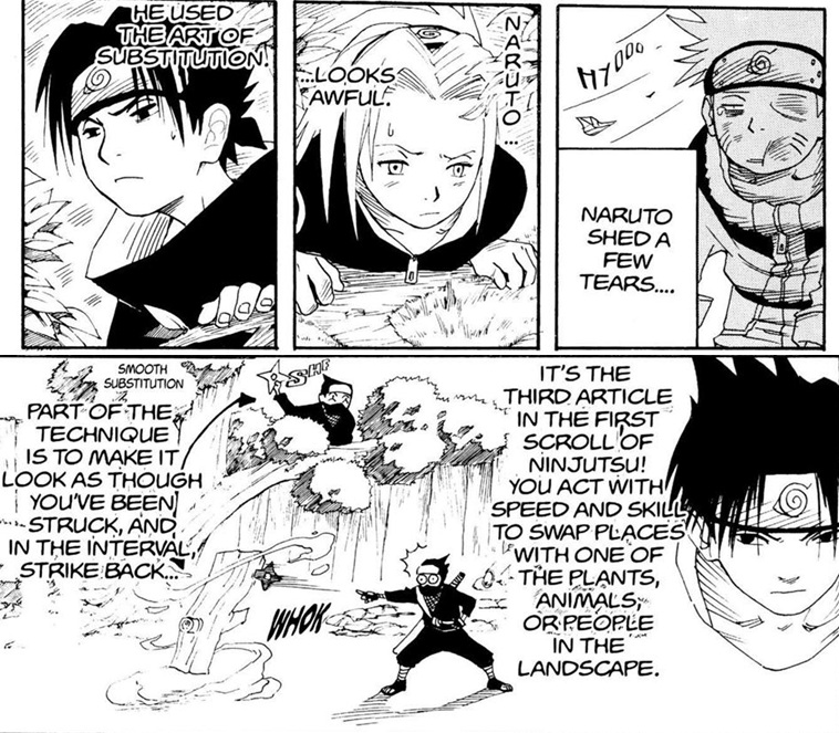 >>286666528>Does substitution also make the opponent have slower perception?Did you see that mentioned when Sasuke explained how it worked?