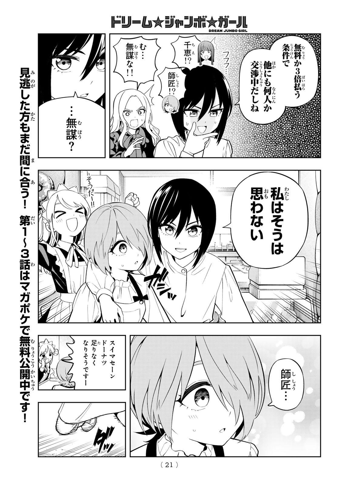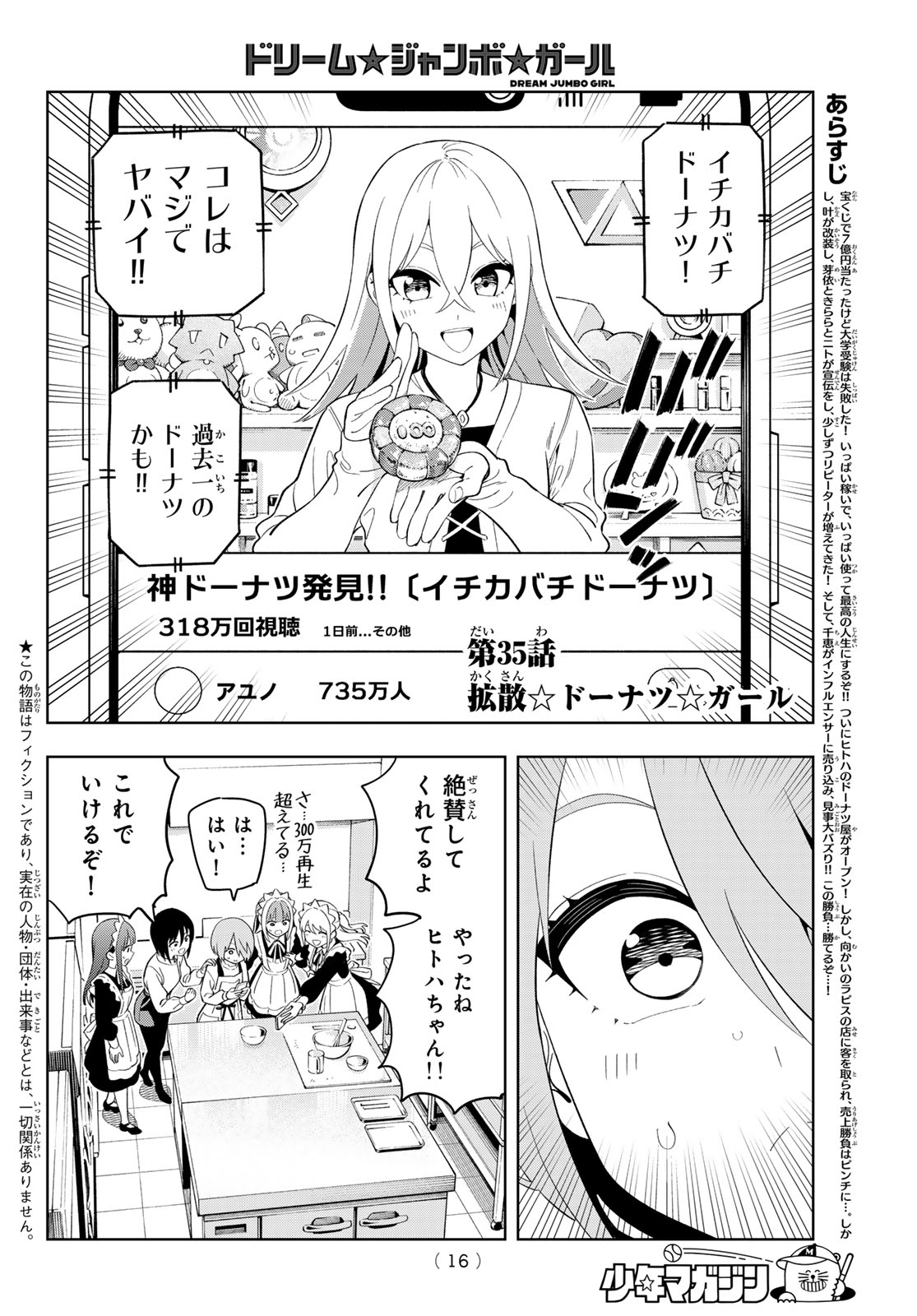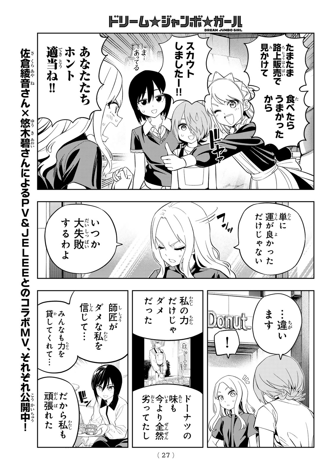 >Dream Jumbo Girl has color pages, and the donut store is doing well and going viral!