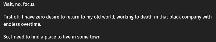 >wake up in another world>1 minute later>fuck my previous lifeThis always bothers me. You are in an unsafe third-world tier fantasy world, and you are not bothered by it?
