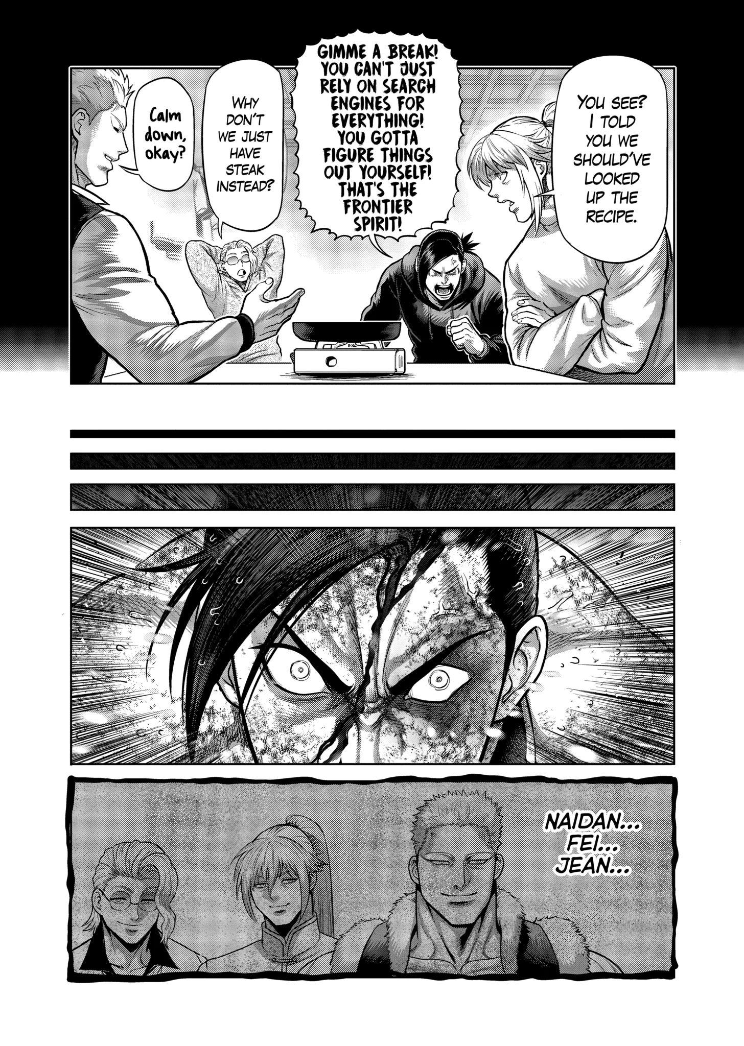 I get that Liu is a good character and people like him, but it's still hard for me to enjoy the chapter when half of the fight was skipped, Nicolas hasn't even used his Sahate and Liu's shoes just disappear. Then again, compared to the usual Omega chapter, you could say "we" are "eating good meat"