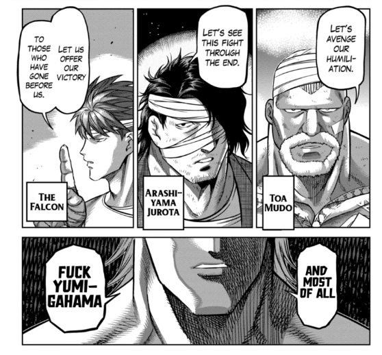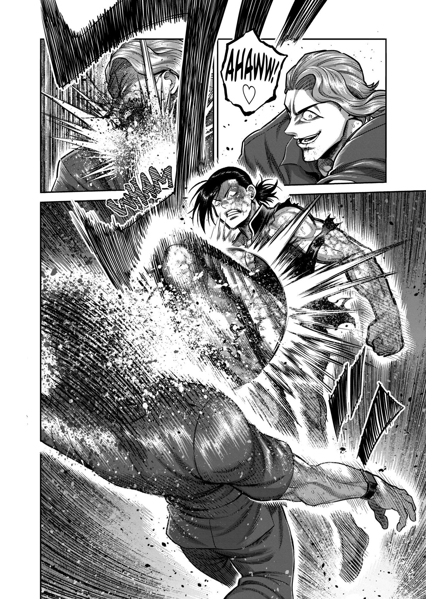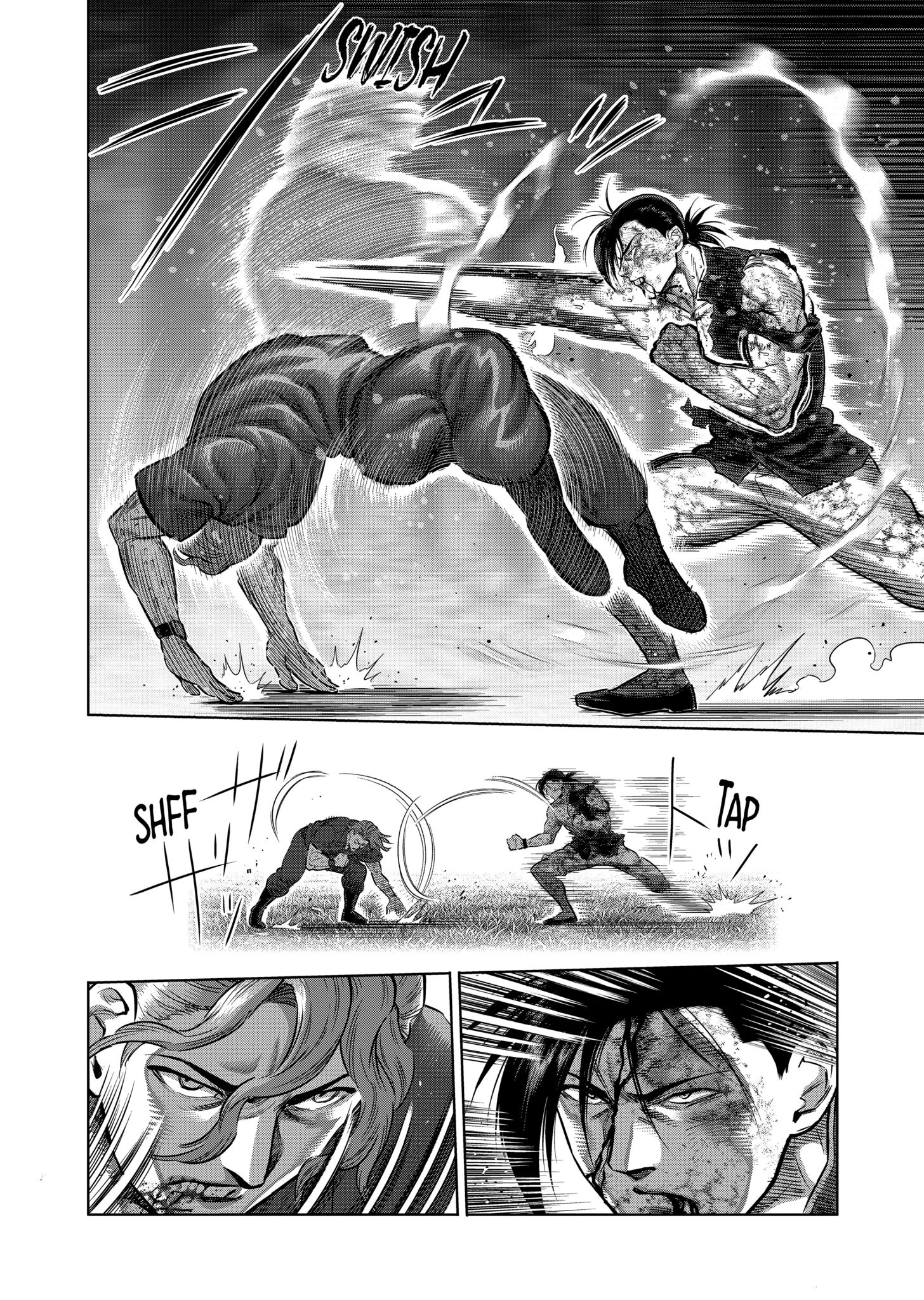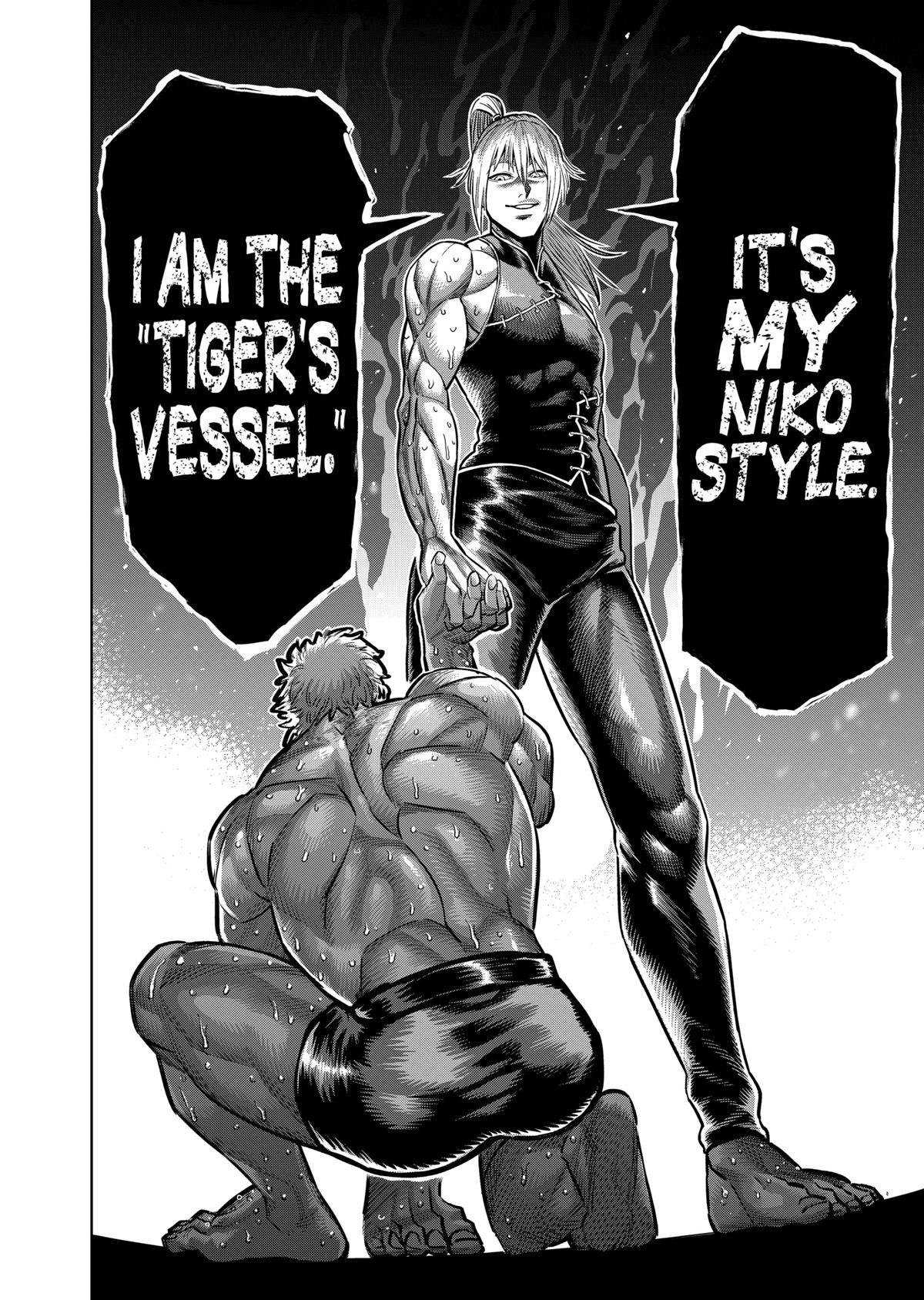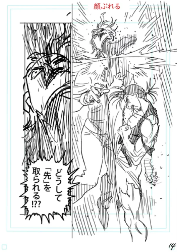 >>286658267>>286661808It wasn't bad but the fight still does the omega thing where the big hits just land without one of the guys trying to block or dodge them for no apparent reason.>>286657606>>286657649This exchange is good because each panel flows into the next so you can follow the action, and you can see how Liu baited Nicholas by sacrificing his arm to deliver a strong blow without the latter being able to avoid it>>286657759This exchange is shit because all you see is Nicholas going SHYEEAAAHH and then getting kicked in the head in the very next panel. Yes, he got baited into attacking but you don't see liu dodging and countering, it's just see Nicholas standing there and taking the hit.