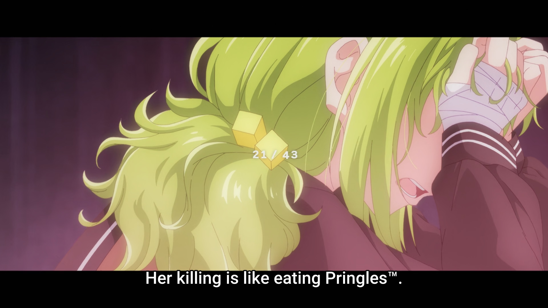 >>286667745So that's what Moegi meant when she said "For her, killing is like eating Pringles."
