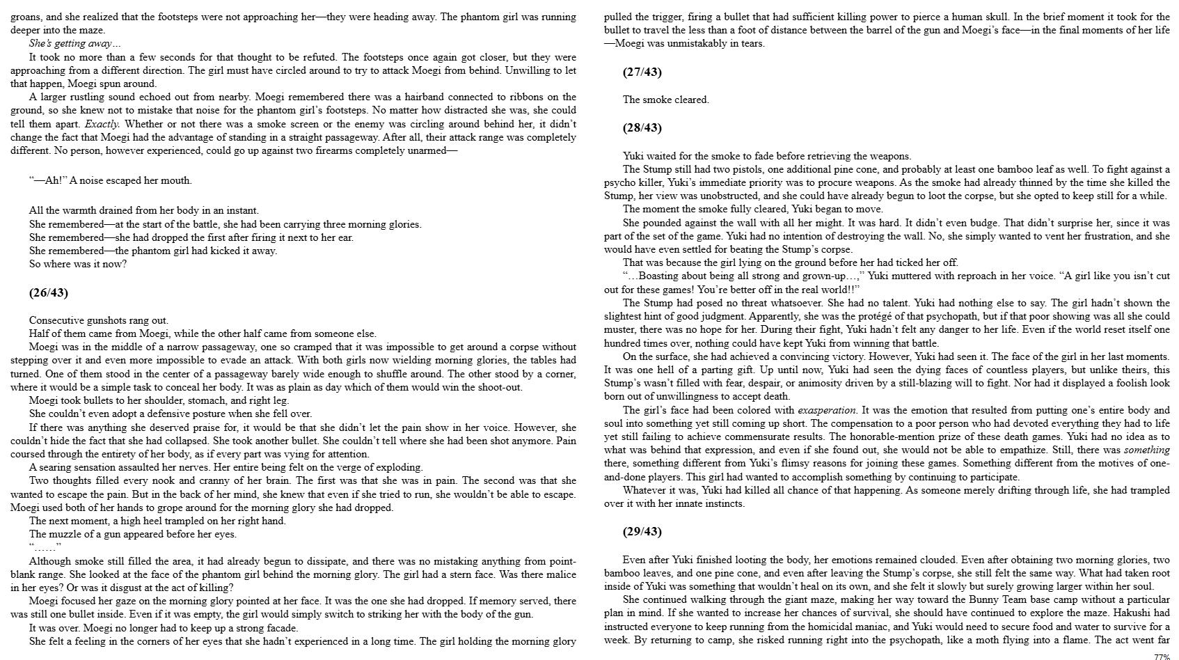 >>286687017The author just decided to split each chapter into numbered parts. Sometimes they're continuous scenes and sometimes they're just single sentences setting up the next actual scene. I don't know why they exist either, but they at least make it easy to tell how far along in each chapter you are without remembering the page numbers.