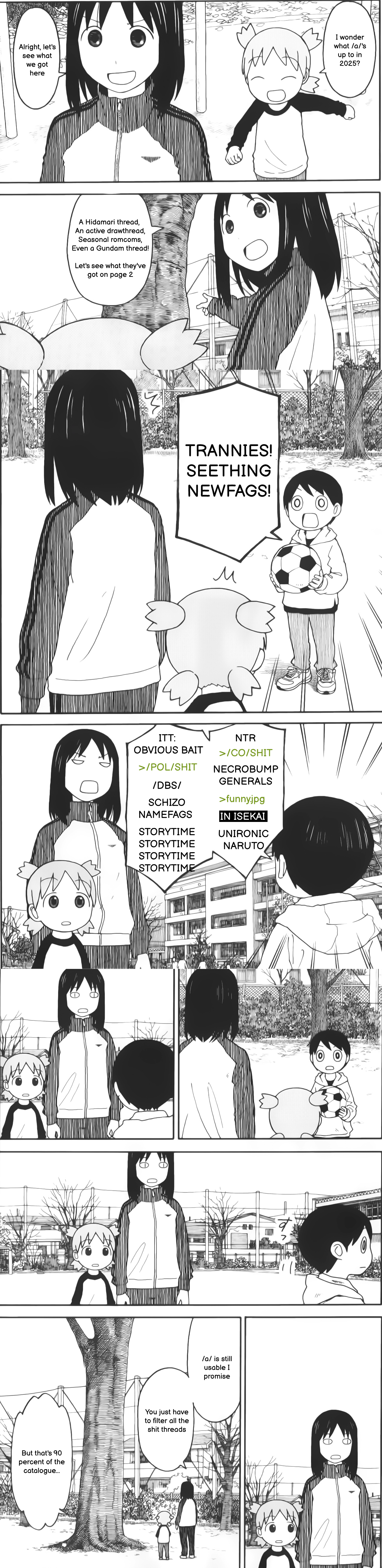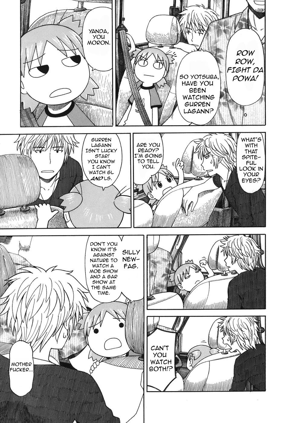 Yotsuba is annoying, dumb, and rude. Only equally stupid incels who think this kind of kid behavior is "cute" like her.