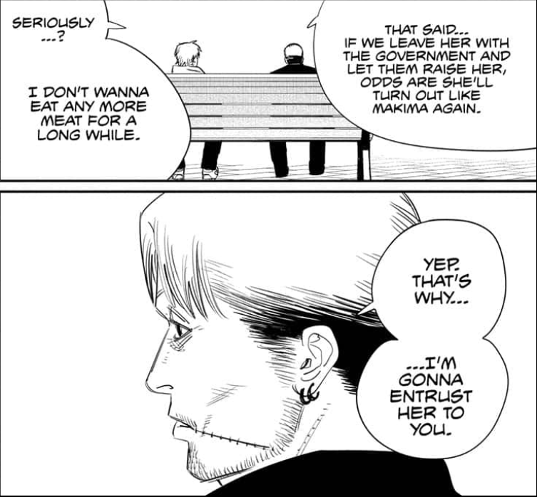Not according to Pochita, he thinks Denji’s brain is just like that. He must be kept poor, hungry, lonely and abused forever, otherwise he’ll immediately abandon whatever small happiness he obtains for the next shiny new thing.