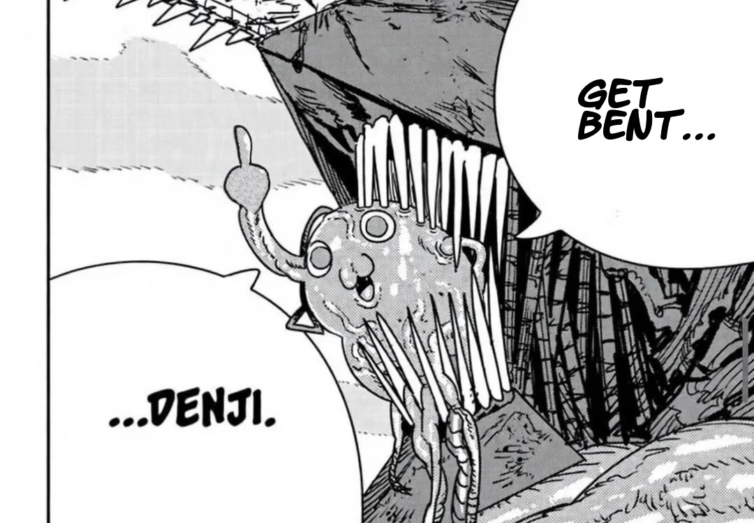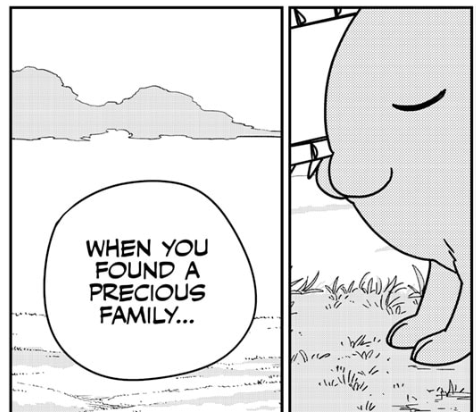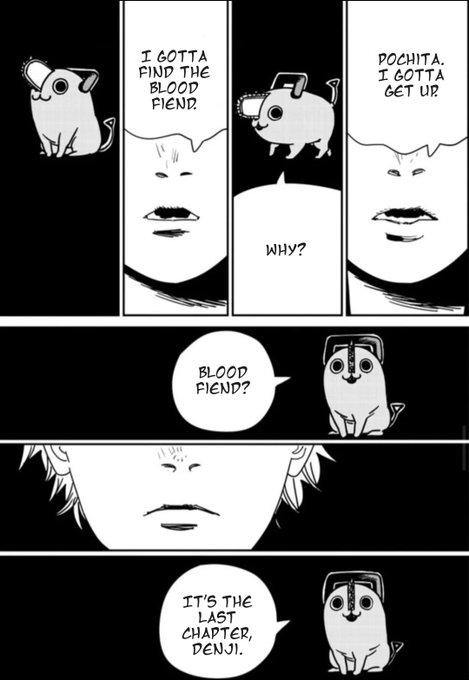 He is. Pochita loves Denji, all jokes aside. It’s just that apparently (I say apparently because we still haven’t seen how this ‘reset’ is supposed to work) he thinks that his best chance of being happy is going back to his miserable shack, dreaming of bread and jam but never obtaining it so that he can’t keep aiming for higher and higher heavens.