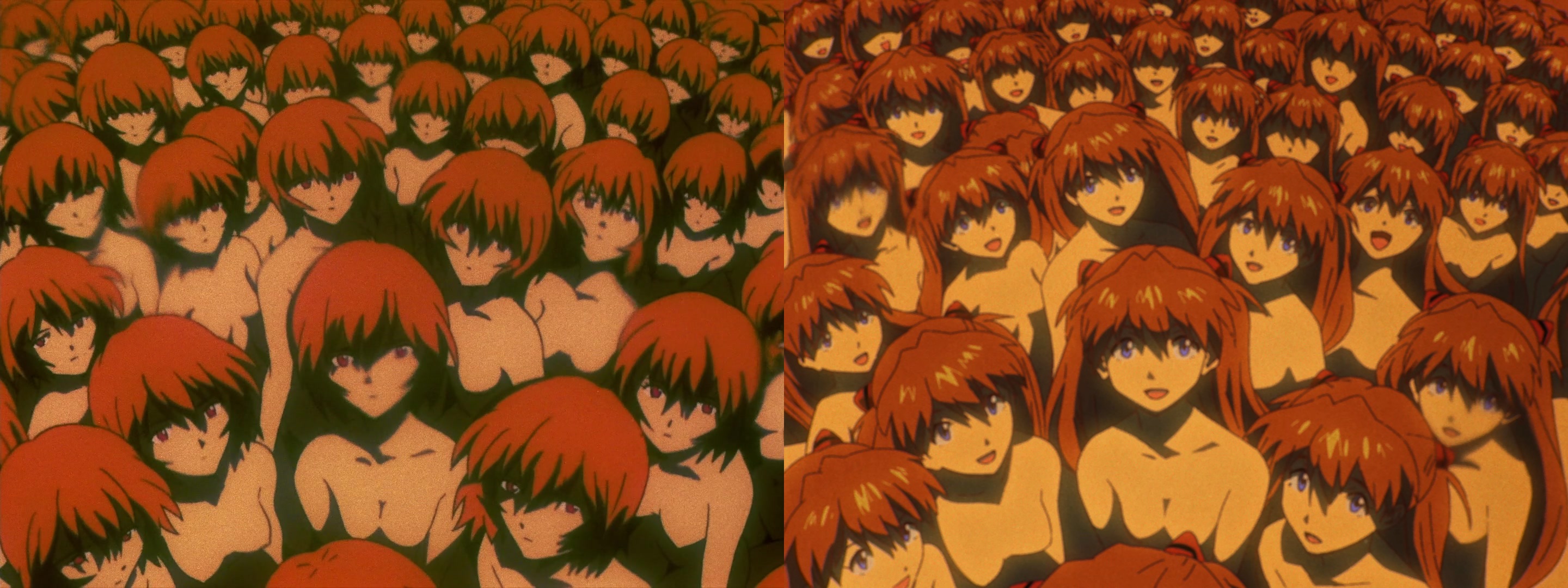 >>286689244>the Rei clones are all frowning and not happy to see meYou fail to see what is going on before your eyes amateur and for that you will die, not me though, A Certain Magical Index depiction of the Misaka Network clone has prepared me for this. You see, like the Misaka's the Rei clones have simply realized what the more inexperienced Asuka clones have yet to understand. The Asuka's unused to being clones are still in the happy to see you moment but there is about 50+ impatient clones and only one of you. The Asuka's are naively happy, the Rei's on the other hand are locked in.With the Asuka mob, the first one that approaches you will change the mood of the group for the worse, the second will cause a "fear of missing out" panic, then it is a stampede. Dozens of Asuka will die under barefoot trying to grab you and you'll probably be pinned against the wall and crushed to death. There is no escape, no calming the panic, this is an imminent death sentence. You can not even climb their bodies to safety, you will be pulled down. Rei just understands the game, it's not a peaceful situation but it is a more orderly one. This likely won't escalate to violence, they will work this out and a long term rotation will be decided on and everyone will walk away alive and safe in the knowledge that they'll eventually be satisfied. Your life will be like picrel but with 14y/o blue haired albino angels replacing 14y/o brown haired tomboy Pikachus.Do the smart thing, choose the Reirotation, do not throw your life away in the Soryustampede no matter how blissful those first few seconds are.